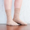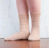 Foot circumferences are measured around the ball of the foot at the widest point and should be used to choose your sizing. Please note that the star pattern is inelastic so these socks have a tighter fit than normal at 3.5cm (1 ½“) of negative ease. If you wish for your socks to have less negative ease, it is recommended you go up a size.