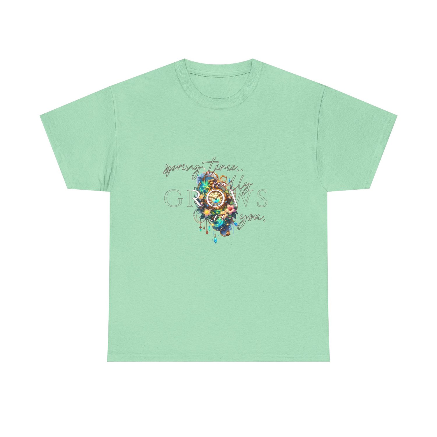 A spring-themed tee that really grows on you, perfect for adding a touch of freshness to your wardrobe. This unisex heavy cotton tee offers a comfortable fit and versatile style, suitable for adults looking for a casual yet trendy addition to their outfit. Ideal for springtime, nature lovers, and those who appreciate simple, nature-inspired designs.