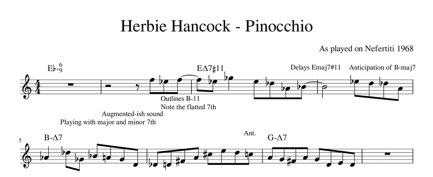 Full transcription of Herbie Hancock's solo on Pinocchio.