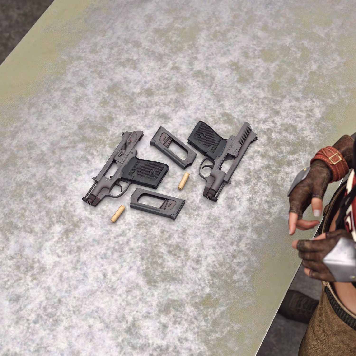 Russian silent pistol. One of the most innovative assassin and spy pistols, that didn't require silencers. The bullet itself is silenced and doesn't make a sound (almost). Cool looking one, very small, great for concealment. The prop is rigged and converted for use with DAZ. Trigger, safety, etc also rigged for more realistic pictures. If you're making a spy or a soldier, spetsnaz or any other special people- this pistol suits it all.
