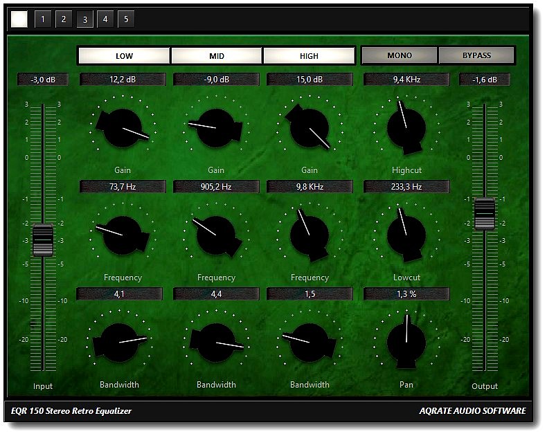 3-band stereo equalizer plus high-cut and low-cut filters with tube character in retro design.