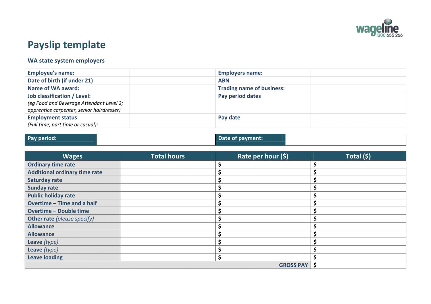 AUSTRALIA WAGELINE payslip template in Word and PDF formats