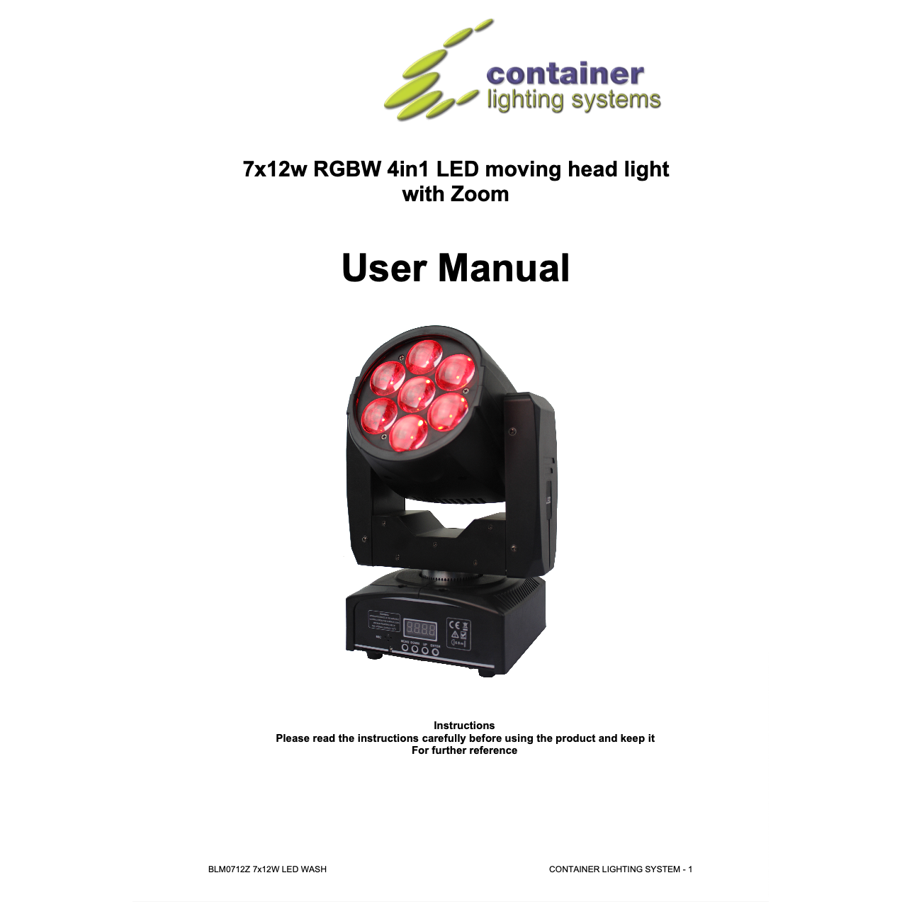 Librería para Sunlite Suite 2 del Cabezal Móvil "BLM0712Z 7x12w RGBW Zoom", de Container ( 10-15CH ).