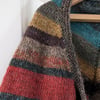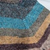 I treated myself to two sets of mini skeins from John Arbon Textiles Virtual Mill Weekend. They are entitled Down the Allotment and have beautiful earthy tones. I wanted to design something that would really show them off and this is what it turned into. This shrug is worked from the top down, I have striped the yarn as it came out of the bag, before it splits for some back shaping and then the arms, with more stripes and an Icelandic cast off.