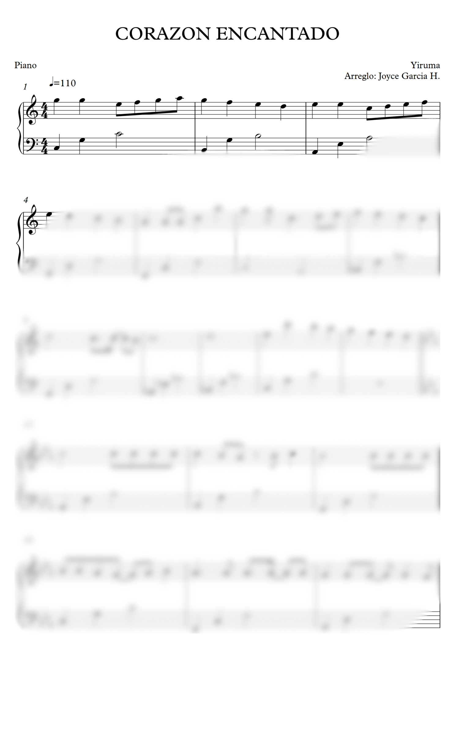 Versión adaptada para piano del tema Corazon Encantado. Ideal para estudiantes, profesores o músicos que deseen interpretarlo en recitales, clases o presentaciones especiales.