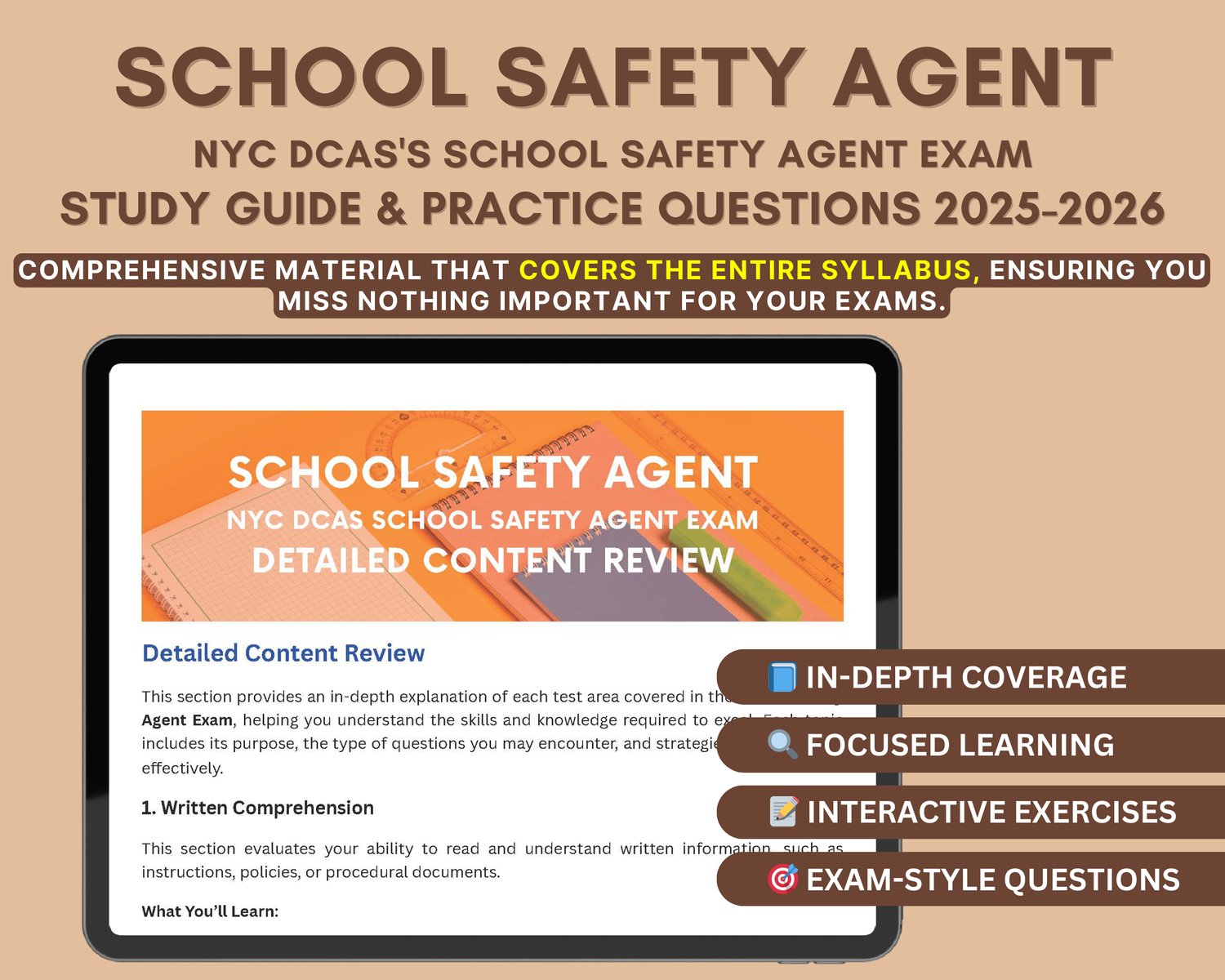 📘 A high-quality digital copy of the School Safety Agent Exam Study Guide 2025-2026.