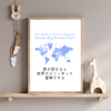 Printable World Map Wall Art, Motivational Japanese Quote Decor for Kids