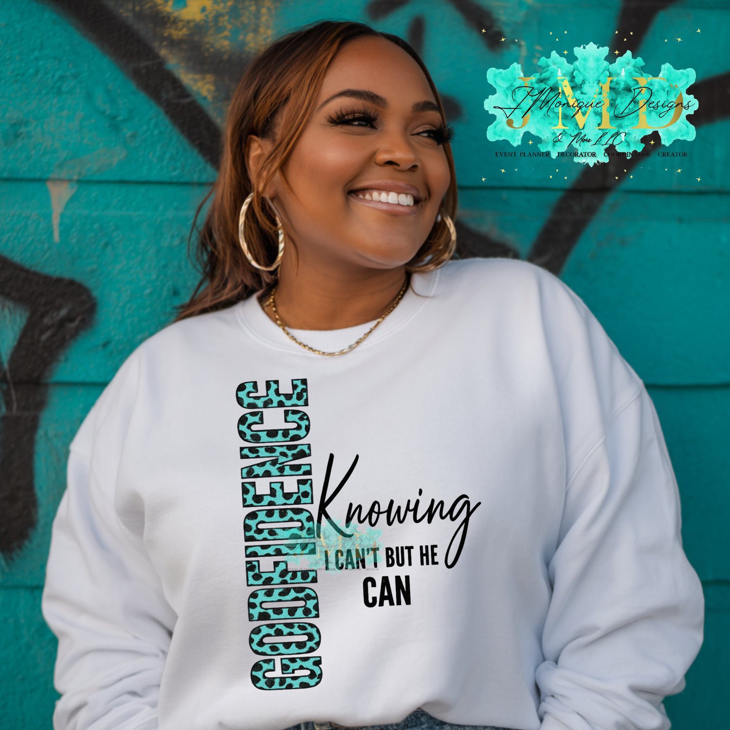 Godfidence Faith Shirt Design | “Knowing I Can’t But He Can” Christian PNG | Inspirational Leopard Print Apparel Graphic