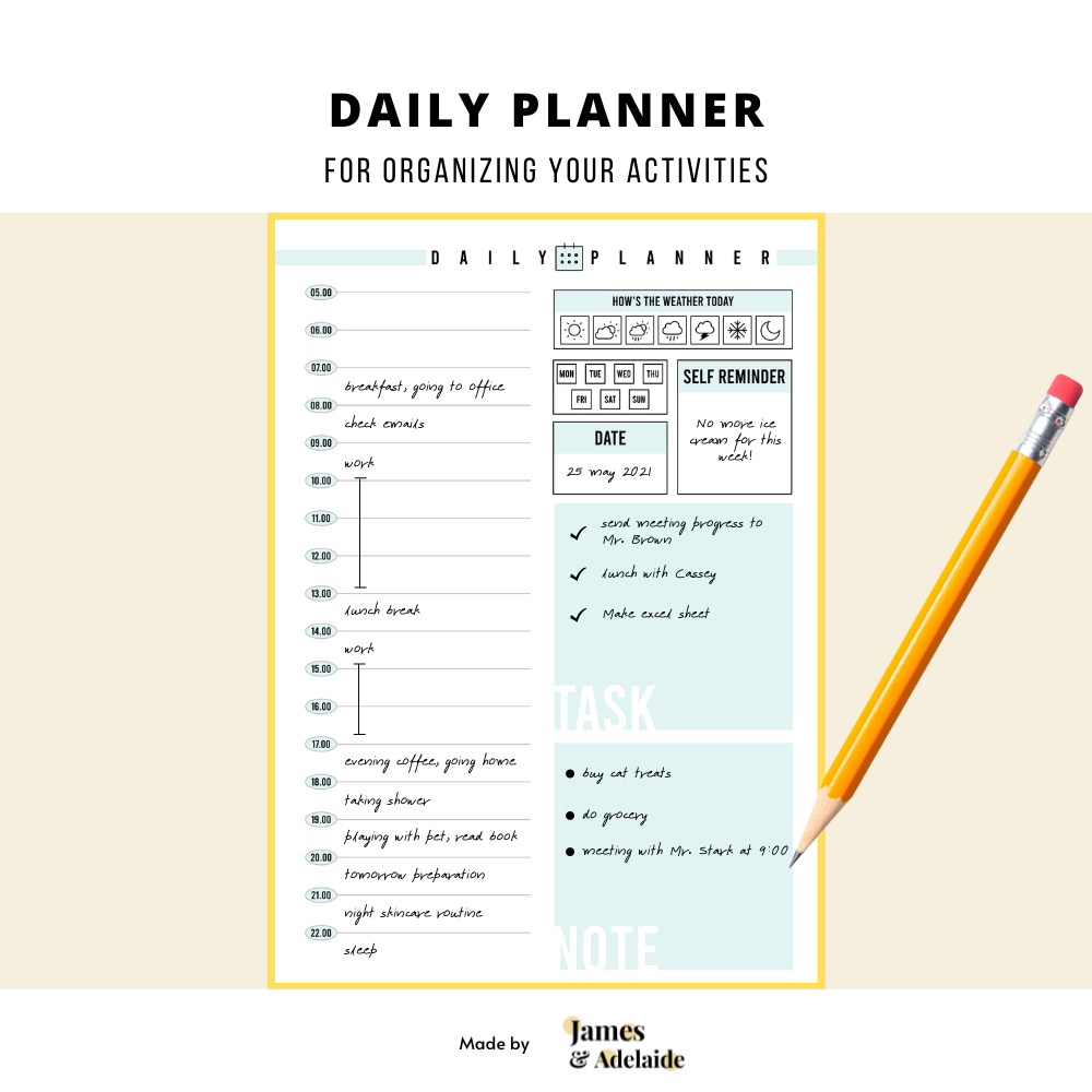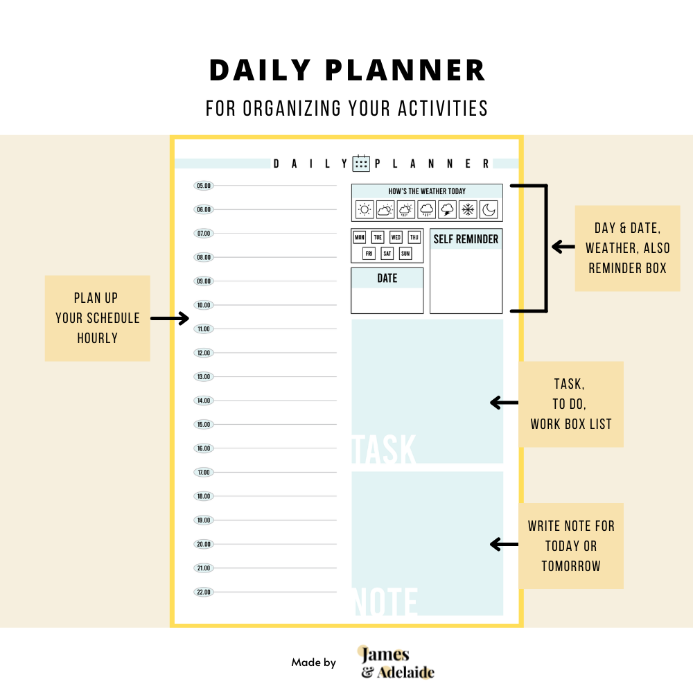 Organize and plan up your schedule and be more productive with hourly daily planner.