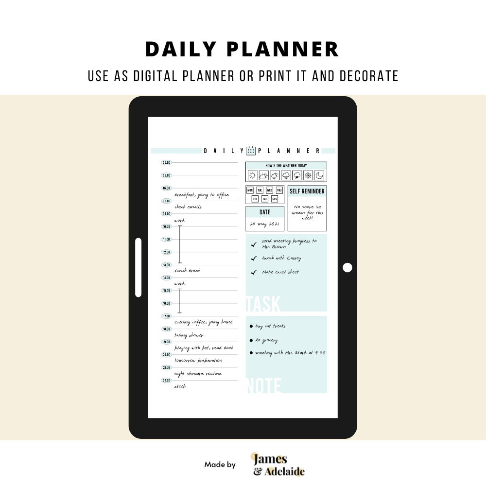 Daily Planner | Daily Hourly Planner | Personal Planner for Productivity | Printable or Digital Use