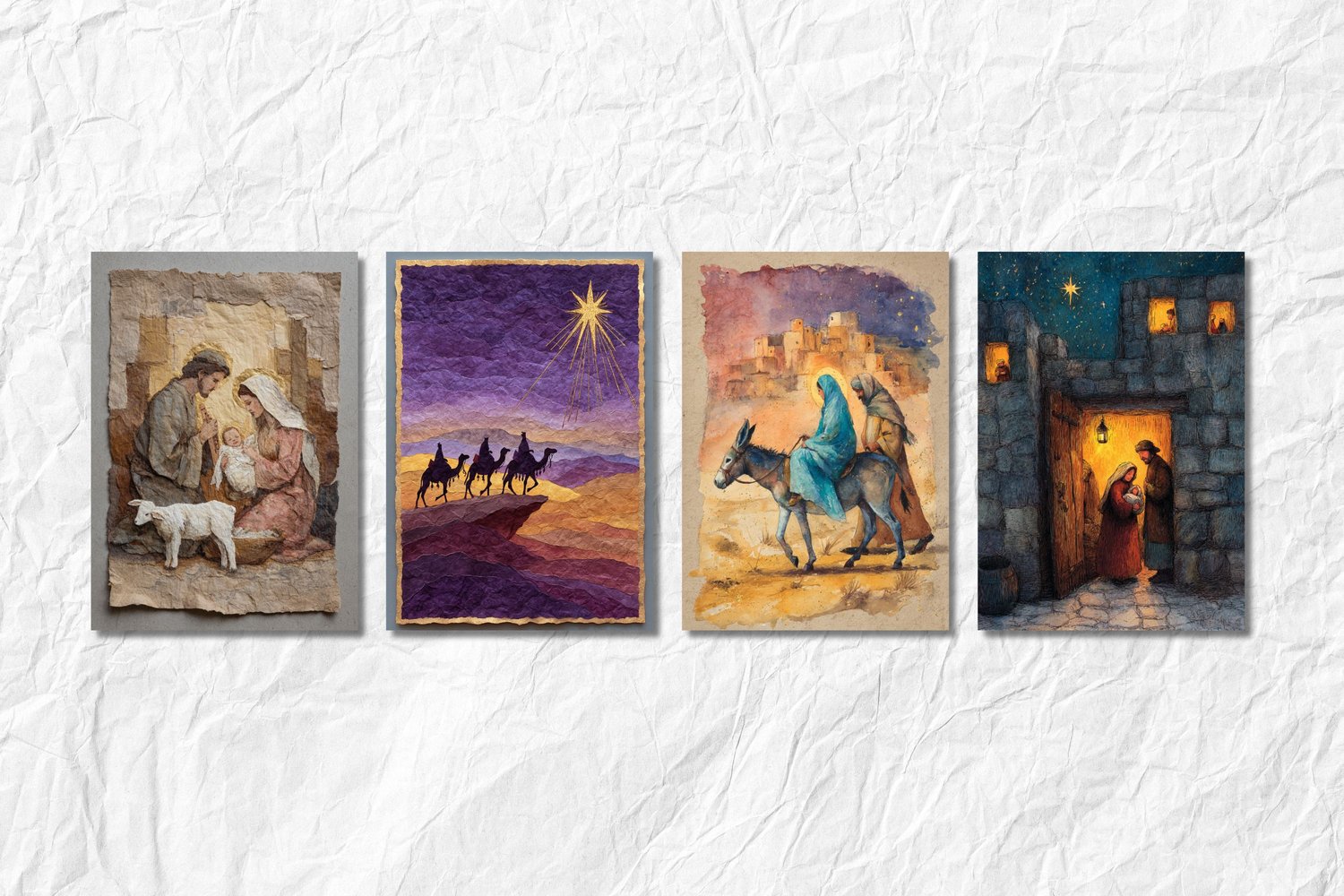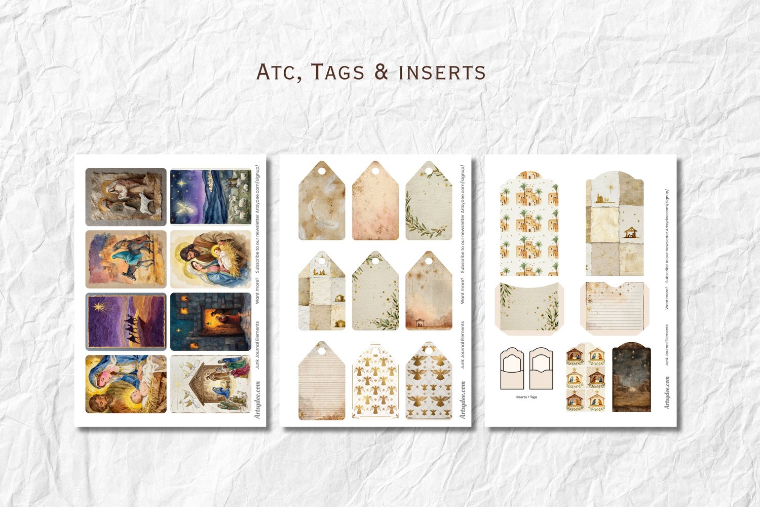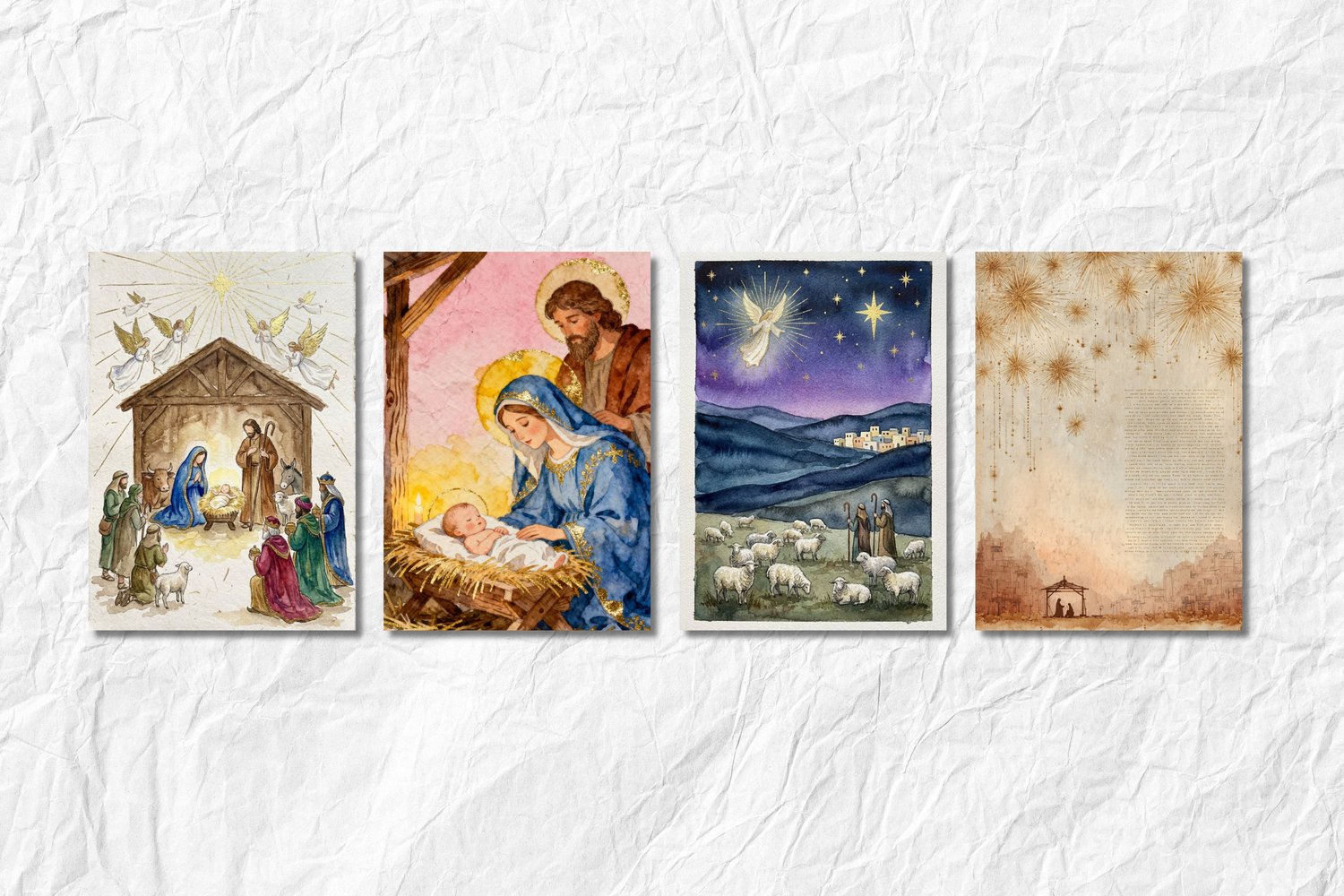 Nativity Junk Journal Kit - 40 Pages + Tags, Ephemera & More | Watercolor Christmas Religious Digital Kit