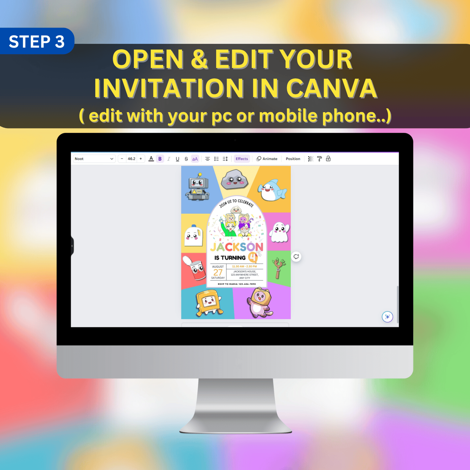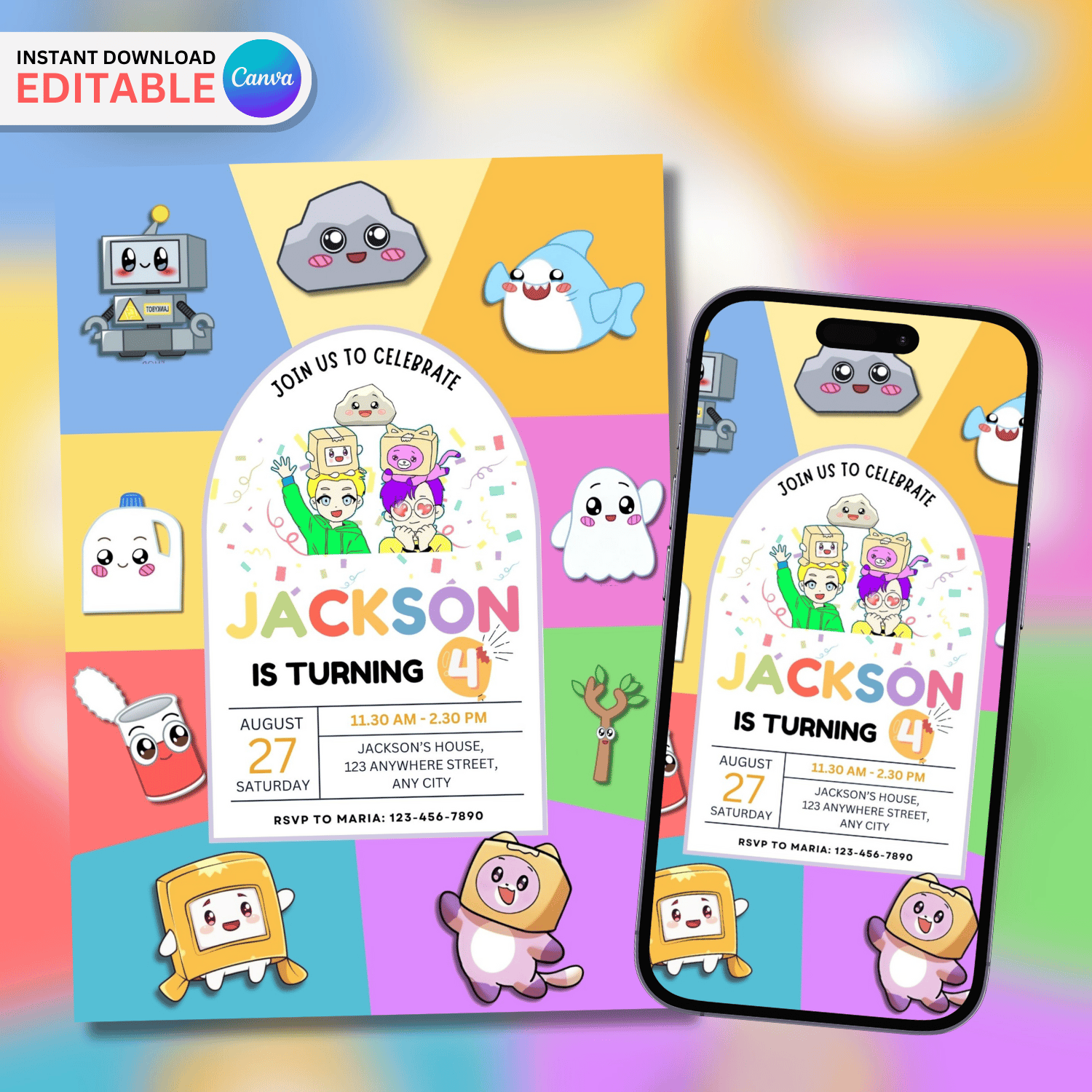 Lankybox Birthday Invitation, lankybox birthday, lankybox invitation, lankybox printable, 5x7inch Editable Canva template