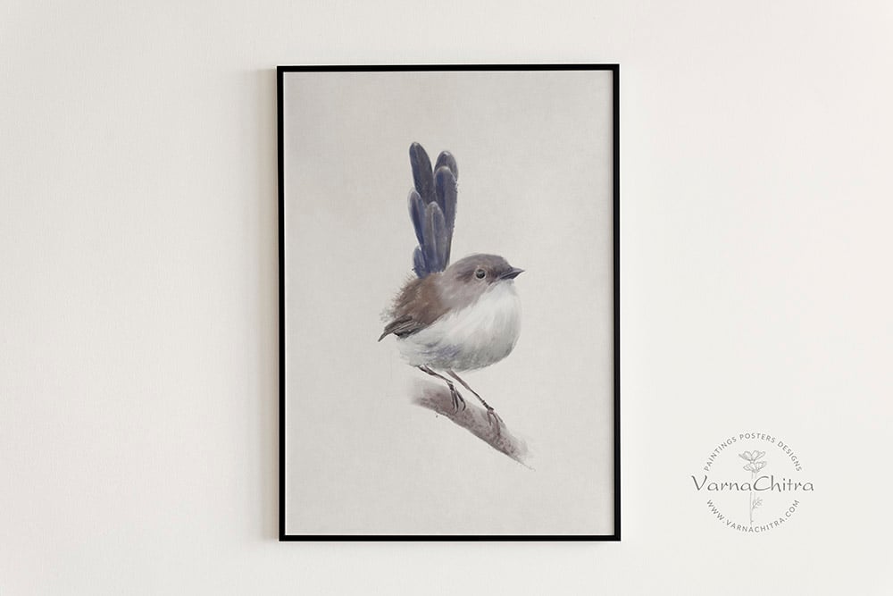 Cute Watercolor Bird, Digital Painting, Hand Painted