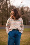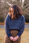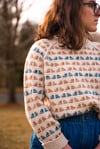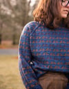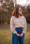 The Bookends Raglan is a cozy all-over colorwork sweater with a twist. The pattern is worked using slipped stitches in lieu of stranded colorwork so only one color is worked at a time. The sweater is worked from the top-down with a raglan construction and a comfy oversized fit.