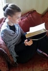 In the winter, when the snow drifts against the fences, the nights are dark and the days are short, I wish I could, like Alice, step through the looking glass and find a warm and sunny world. But, as I can’t, it is the perfect time to settle down with a good book, a warm drink and a shawl to snuggle in. This shawl starts from a 3 stitch garter tab and grows with soft cables and eyelets to a tiny lace border. Knit in a silk cashmere blend, if knitting were food, this would be the comfort food of the knitter’s diet.