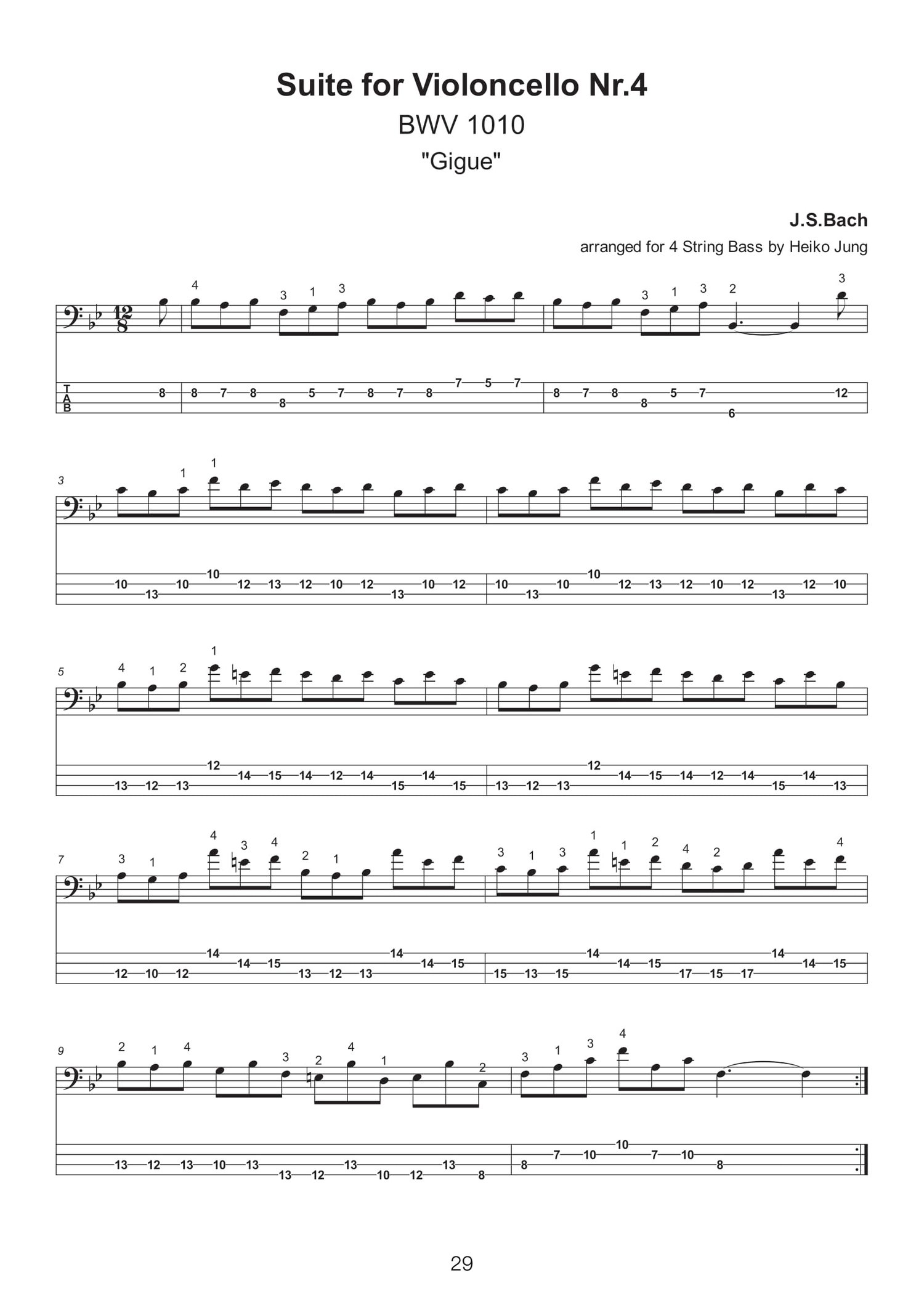 With this ebook, I am glad to present a selection of eleven solo pieces arranged for 4 String Bass that were taken from the repertoire of the famous "Six suites for violoncello solo" by Johann Sebastian Bach. In addition to the entire Suite No.1 you will also find excerpts from Suites No.2 and No.4.
