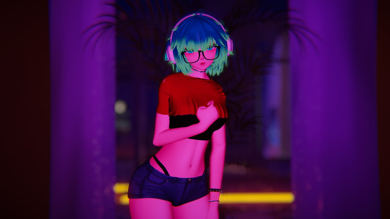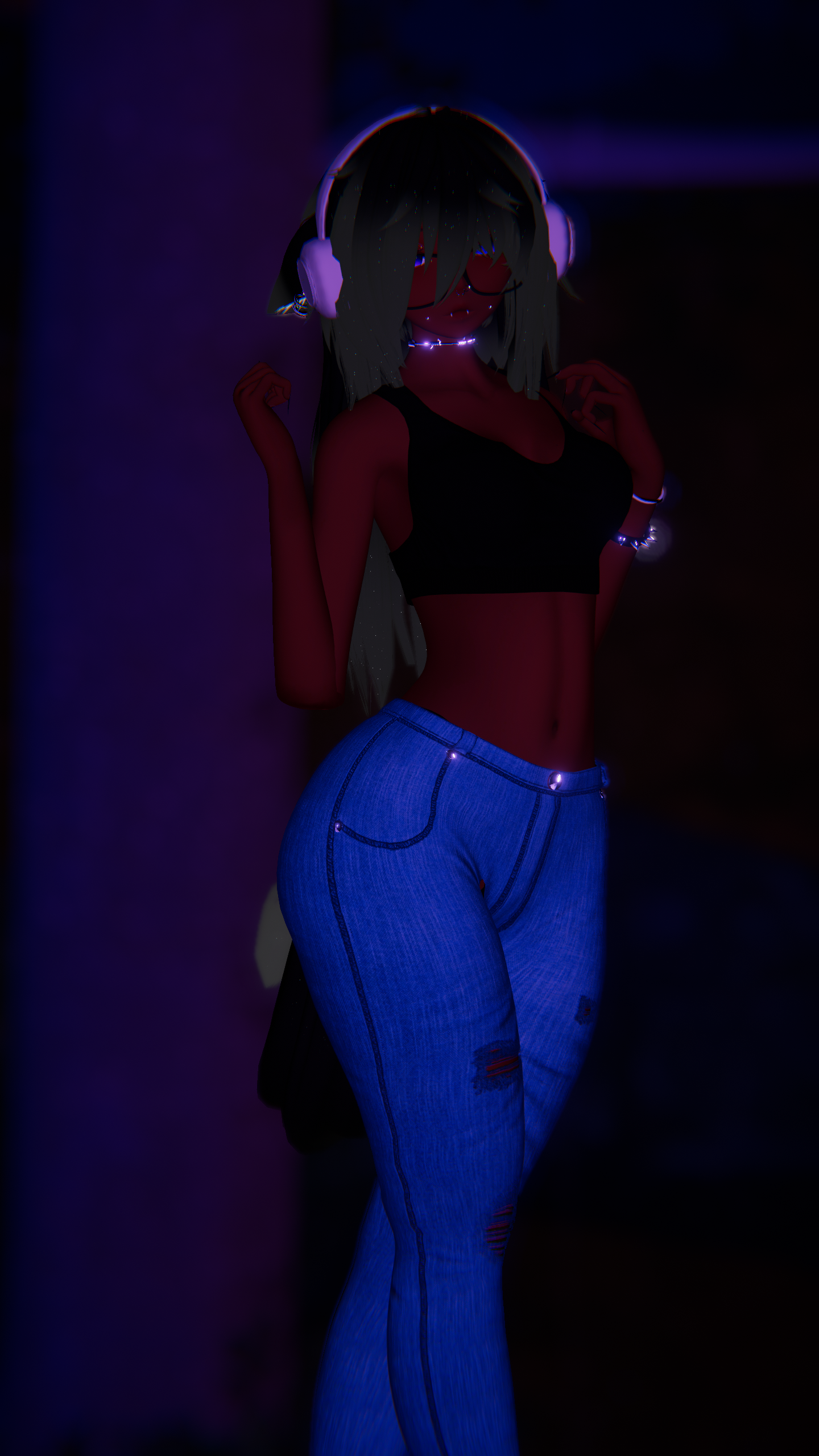 Accessories: Headphones by Yan, Glasses by Salted, Choker by teacakezzz, Bracelet by Ritual, Hairties by Heteroschmexual, Piercings by Slurp, Fangs by Meeva(In server)