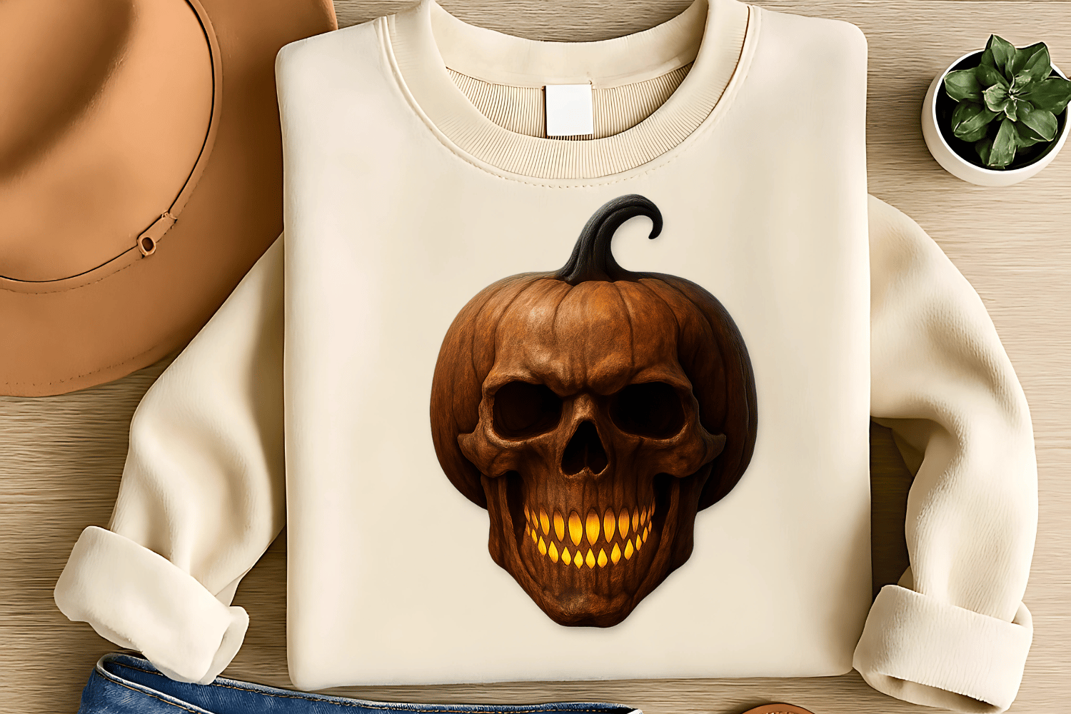 Grim Pumpkin Skull Sublimation PNG – Scary Halloween T-Shirt Design – Dark Gothic Horror Theme – 300 DPI Instant Digital Download