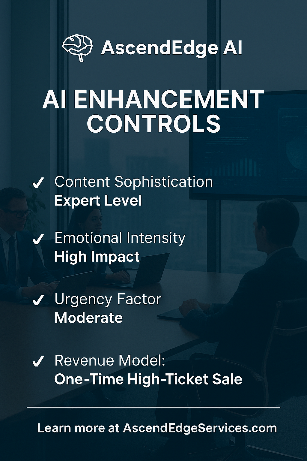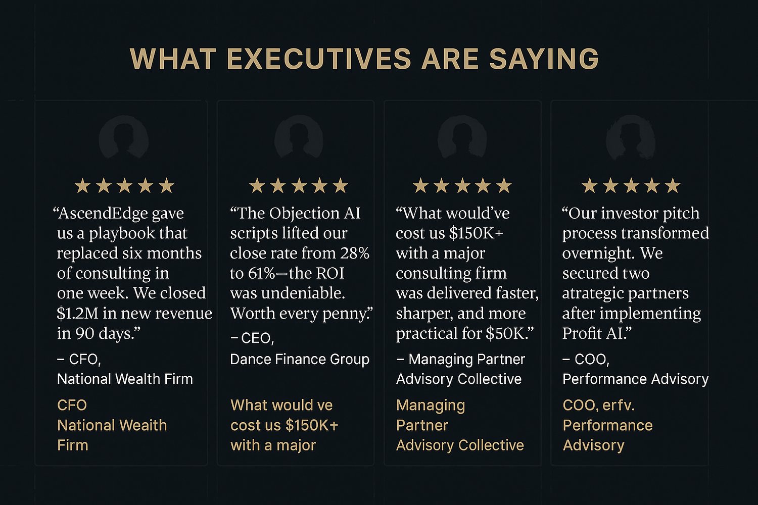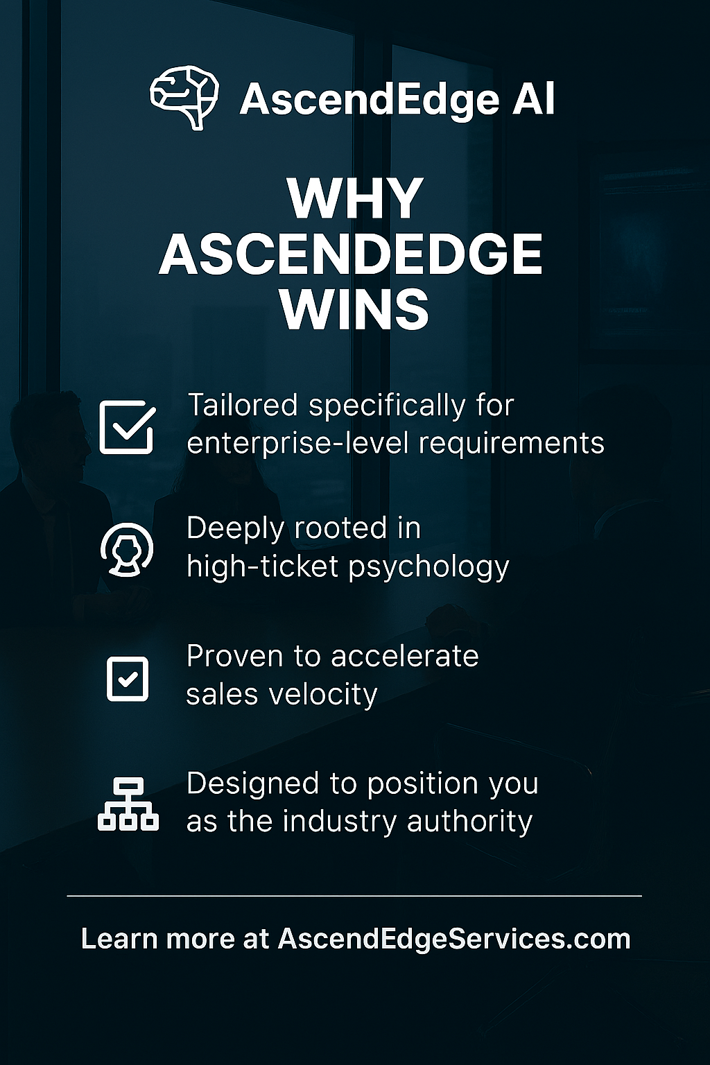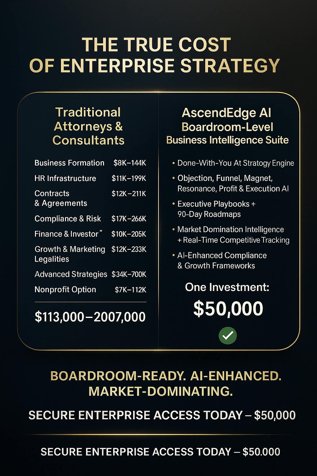 βIf you went to traditional firms for this level of business intelligence, compliance, and execution frameworks, youβd spend between $113,000 and $207,000. With AscendEdge, you get the entire suite β boardroom-ready, AI-enhanced, and done-with-you β for $50,000.β