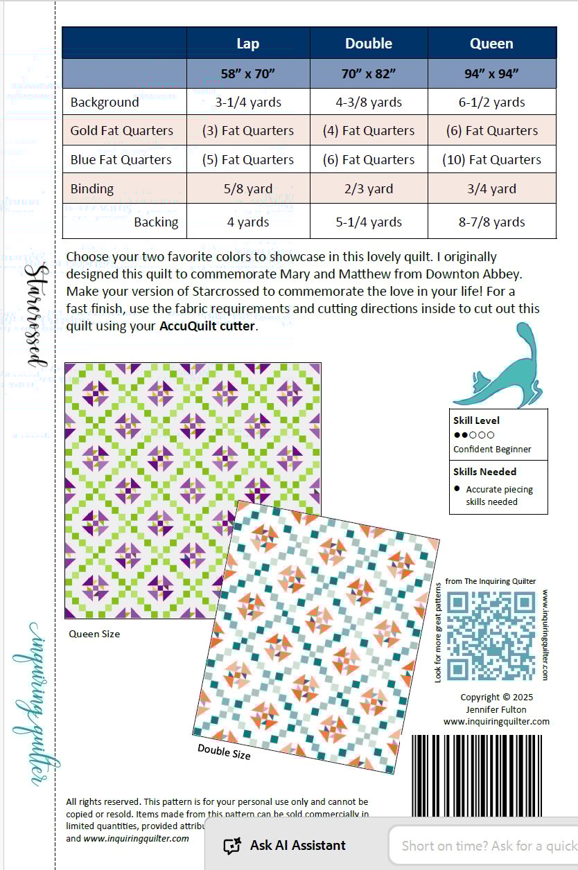 - Additional fabric requirements and cutting instructions for using AccuQuilt to cut out your quilt