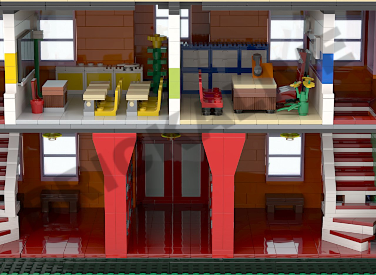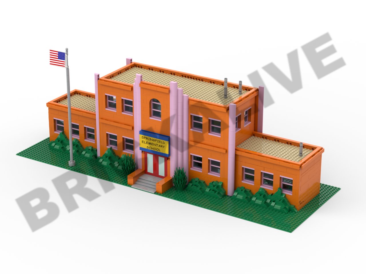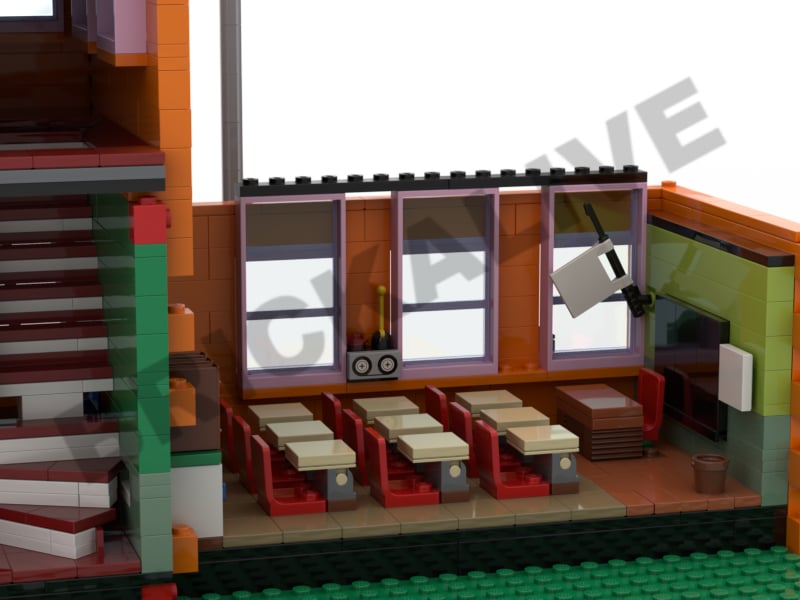 Model of more than 3700 pieces, size: 76 cm long, 26 cm wide and 30 cm high, respecting the scale of Simpson Lego figurines, it will fit perfectly with the official lego models (Simpson house and Kwik E-Mark).