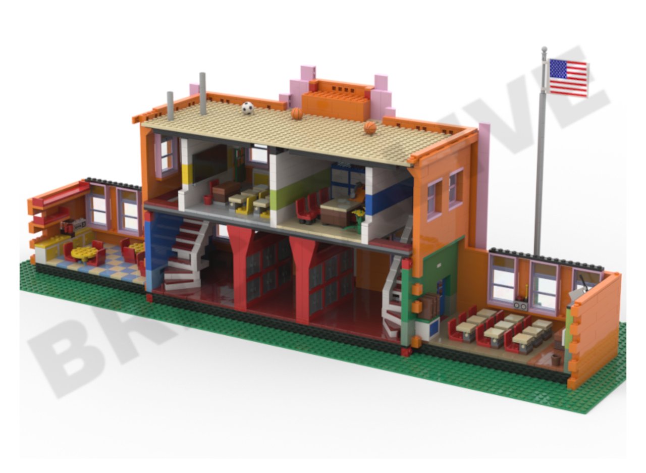 Using the SNOT technique, the interior is completely finished and include Bart's classroom (generic reproduction), the principal's office Skinner, Lisa's classroom, cafeteria, hallway with lockers.