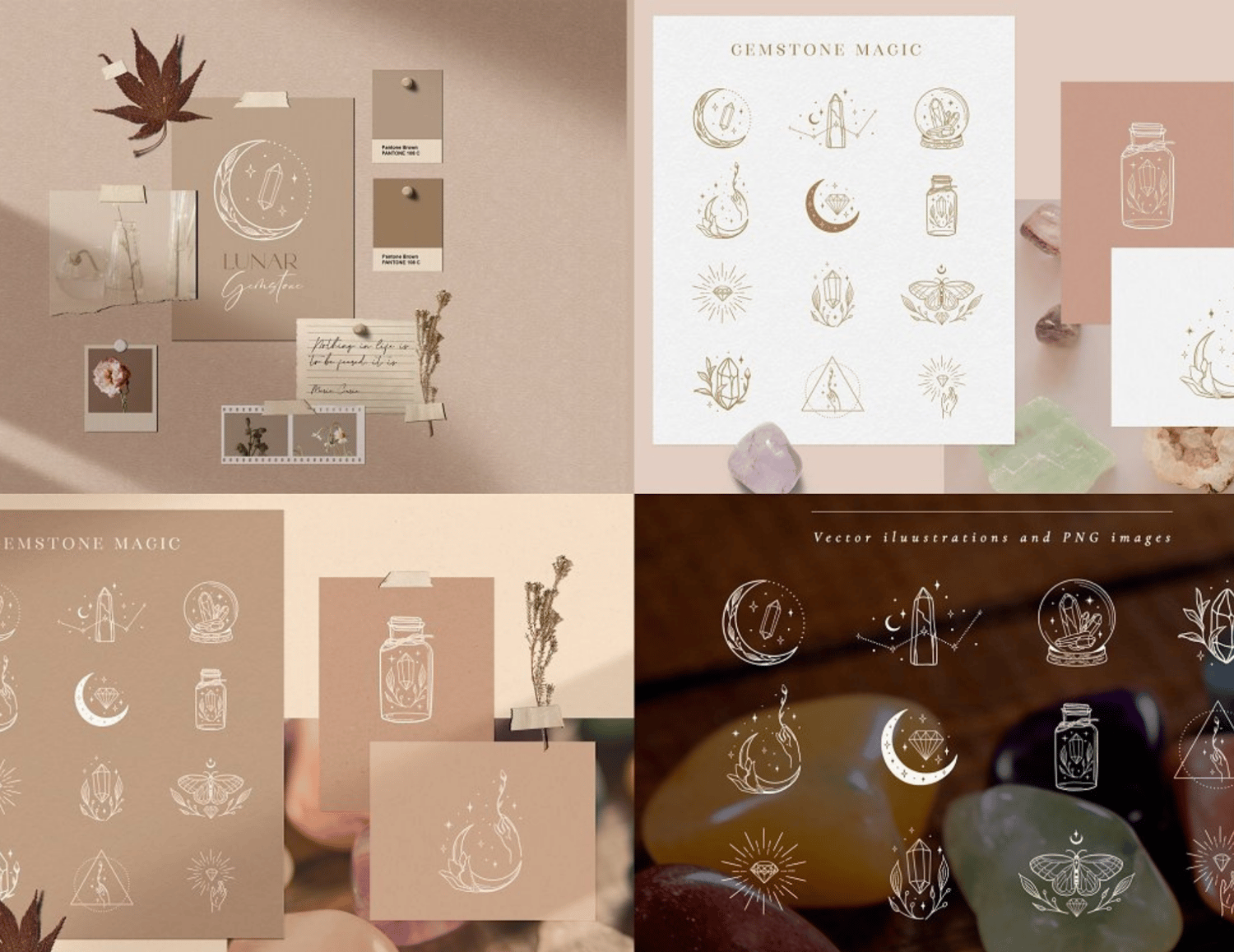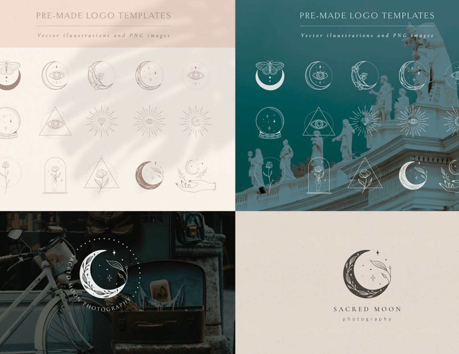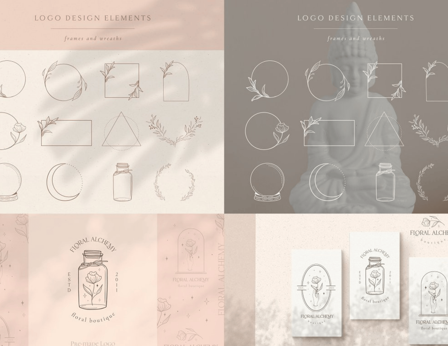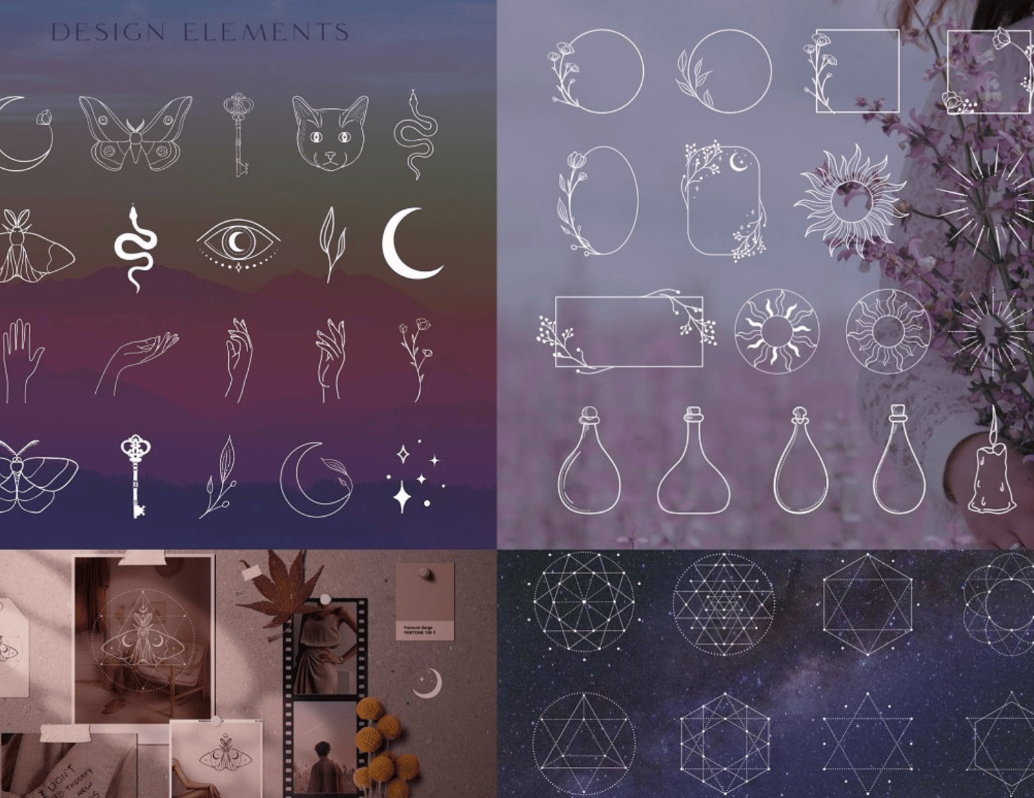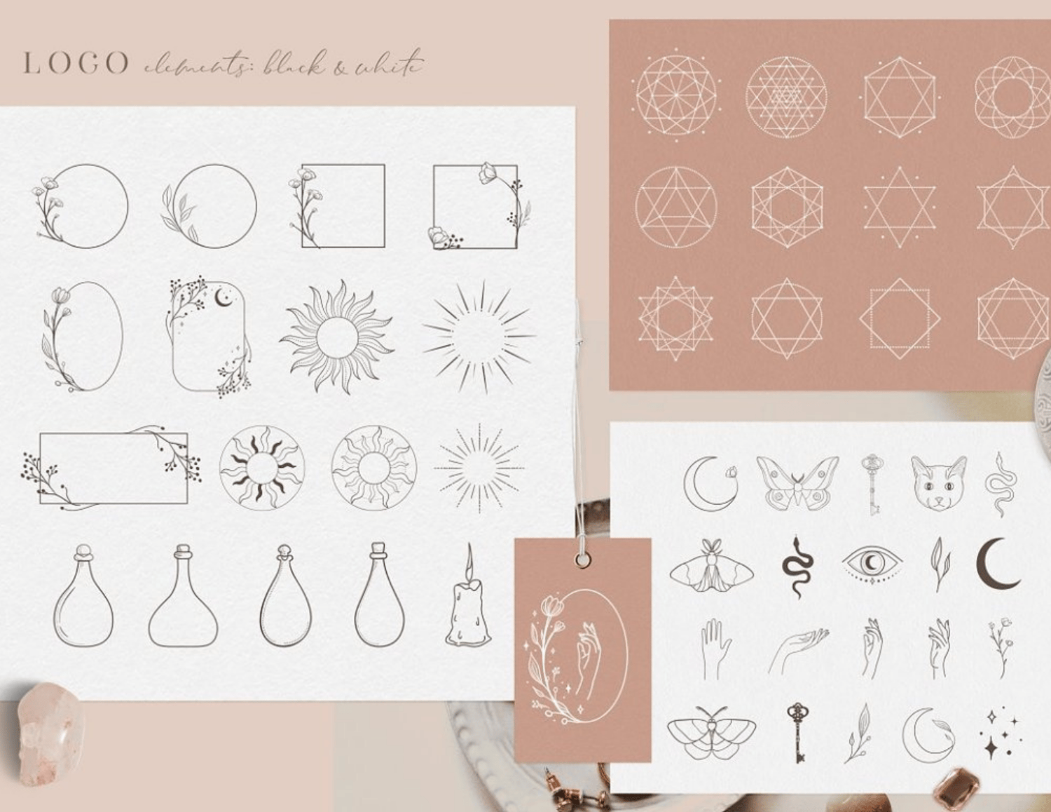 28 Sets in 1 ~ 1450+ Line art graphic elements ~ pre-made logo and packaging designs, logo elements, illustrations, instagram story highlight icons and templates, seamless patterns, geometric and floral frames and more! Update: the alternative SVG files for Canva are added Designers are always looking for more. More graphics. More patterns. More elements. Well, with this Unique Logo Bundle, you'll get all that and more! Packed with more than 1400 professional graphic elements, you'll get everything from simple elements to pre-made logo templates. No matter your latest project, you're sure to find some new design elements in this bundle that fit the bill perfectly for you. Highlights: Over 1450 professional graphic elements in 1 bundle! A designer's dream - magic designs, decorative elements, logo templates, icons, illustrations, seamless patterns, instagram story highlight icons and templates and more. Massive flexibility in use - perfect for logo, branding, packaging design, cards, wedding invitations, save the date, personal stationeries, templates, wallpapers, textiles, packaging, accessories, invitation suit box, website design, social media, heirloom album, tattoo, paper bags and whatever you love etc. Multiple file formats - EPS 10, SVG, AI, PNG, JPG, PDF files. Unique and elegant design Click the BUY NOW button to make your artistic toolbox extra happy today! What's in the bundle? ELEMENTS Logo Elements, Illustrations, Geometric and Floral Frames Logo Elements, Frames and Borders White Logo Elements, Frames and Borders Logo Elements, Frames, Sunbursts White Logo Elements, Frames, Sunbursts Mystic Garden Floral Collection LOGO TEMPLATES / DESIGNS Esoteric Logo Templates vol.1 White Esoteric Logo Templates vol.1 Sacred Sun Logo Design Illustrations Pre-made Logo Designs White Pre-made Logo Designs Esoteric Logo Templates vol.2 Gemstones Logo Elements White Gemstones Logo Elements 9. The New Collection is added ~ Mysterious Logos INSTAGRAM ICONS Instagram Highlight Story Templates 1 Instagram Highlight Story Templates 2 PRE-MADE LOGO AND PACKAGING DESIGN KITS (with editable text of the business name and tagline) Sacred Moon Pre-made Logo Template + Packaging design Floral Alchemy Pre-made Logo Template + Packaging Moonspell Pre-made Logo Template + Packaging design Magical Flora Pre-made Logo Template + Packaging design Magic Gems Pre-made Logo Template + Packaging design Honey Bee Pre-made Logo Template + Packaging design Blackstone Pre-made Logo Template + Packaging design Maritime Pre-made Logo Template + Packaging design Relacion Pre-made Logo Template + Packaging design Moonlight Pre-made Logo Template + Packaging design Witchcraft Pre-made Logo Template + Packaging design Please note, that you can edit text (business name and tagline) in Adobe Illustrator, not Photoshop What formats of these products? ILLUSTRATIONS [ Saved in vector and raster. Vector files are stored in AI, EPS 10 and SVG format (some have PDF). Raster files are stored in individual 300 dpi PNG with transparent background]; PATTERNS [ Saved in 4 format: SVG, EPS 10, PNG and JPG); Requirements: CANVA : SVG VECTOR: Adobe Illustrator CS1+ or newer. Also vector files in format EPS 10 may be used in other vector programs. Check software your program. RASTER: Adobe Photoshop. Also raster files in PNG format may be used in other photo editing programs. Check software your program.