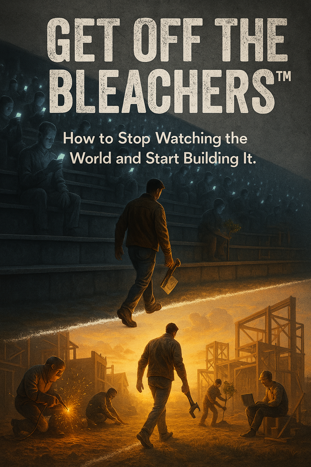 A philosophical operating system that destabilizes the modern addiction to spectatorship and codifies the transition into creative agency. The format fuses stylized documentary aesthetics with a gamified diagnostic engine, exposing the toxicity of the "Bleachers" while offering a scalable toolkit for civic repair. It translates the abstract anxiety of the scroll into the concrete utility of the build.