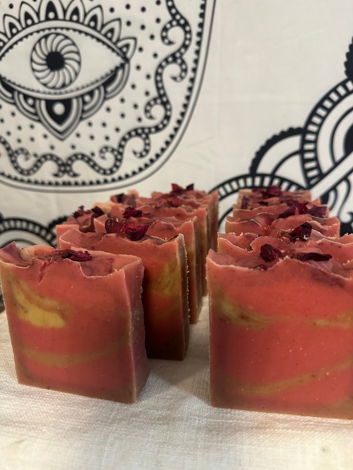 Inspired by the goddess of love and sensuality, Aphrodite. This soap was created at a perfect moment, aligned with Venus astrology (avoid during Venus retrograde). Each ingredient was chosen with intention—cinnamon, honey, and rose petals—all known for their powerful connection to love rituals.