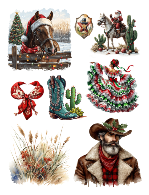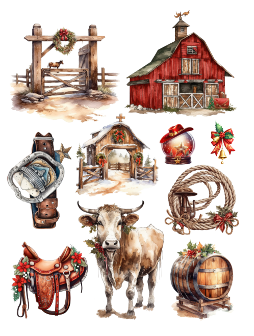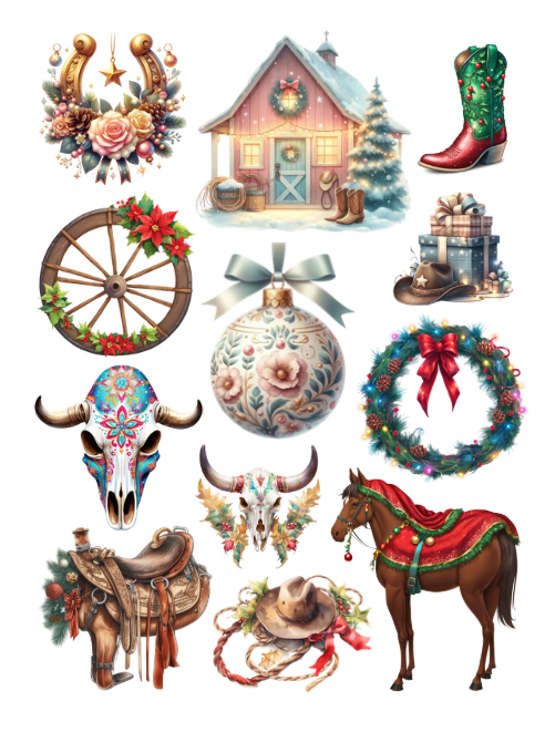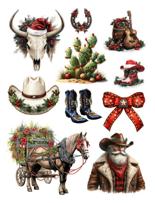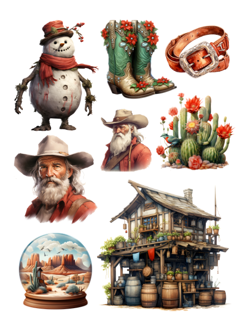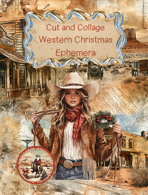 Western Cowboy Christmas Ephemera to Cut and Collage PDF Printable Version