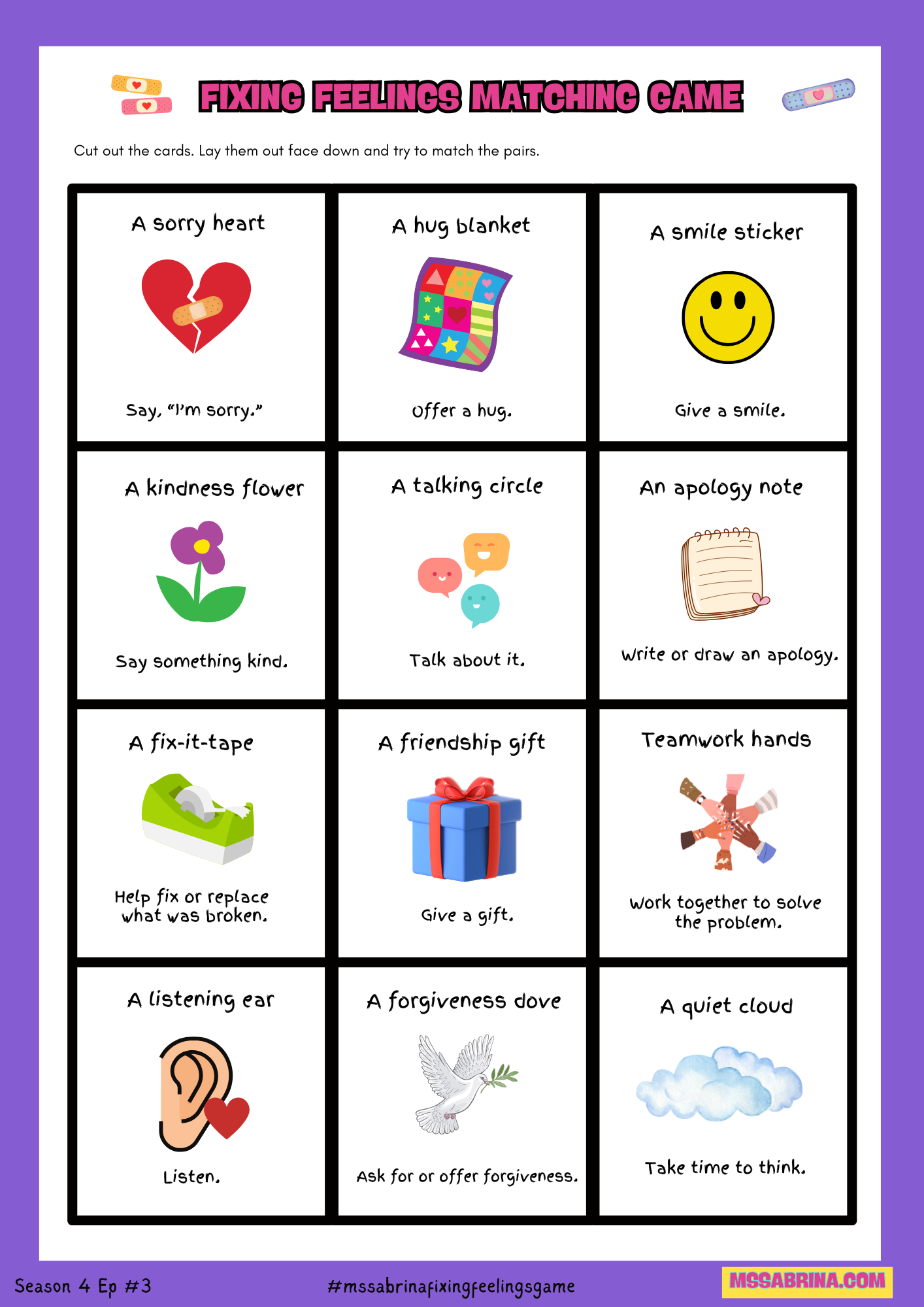 Estos recursos también se pueden descargar de forma individual y gratuita en MsSabrina.com.
