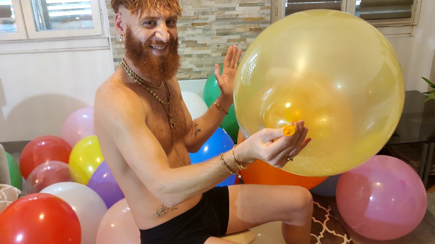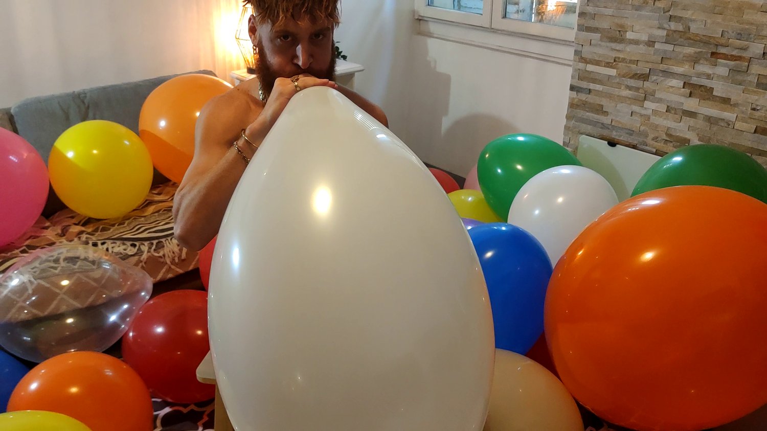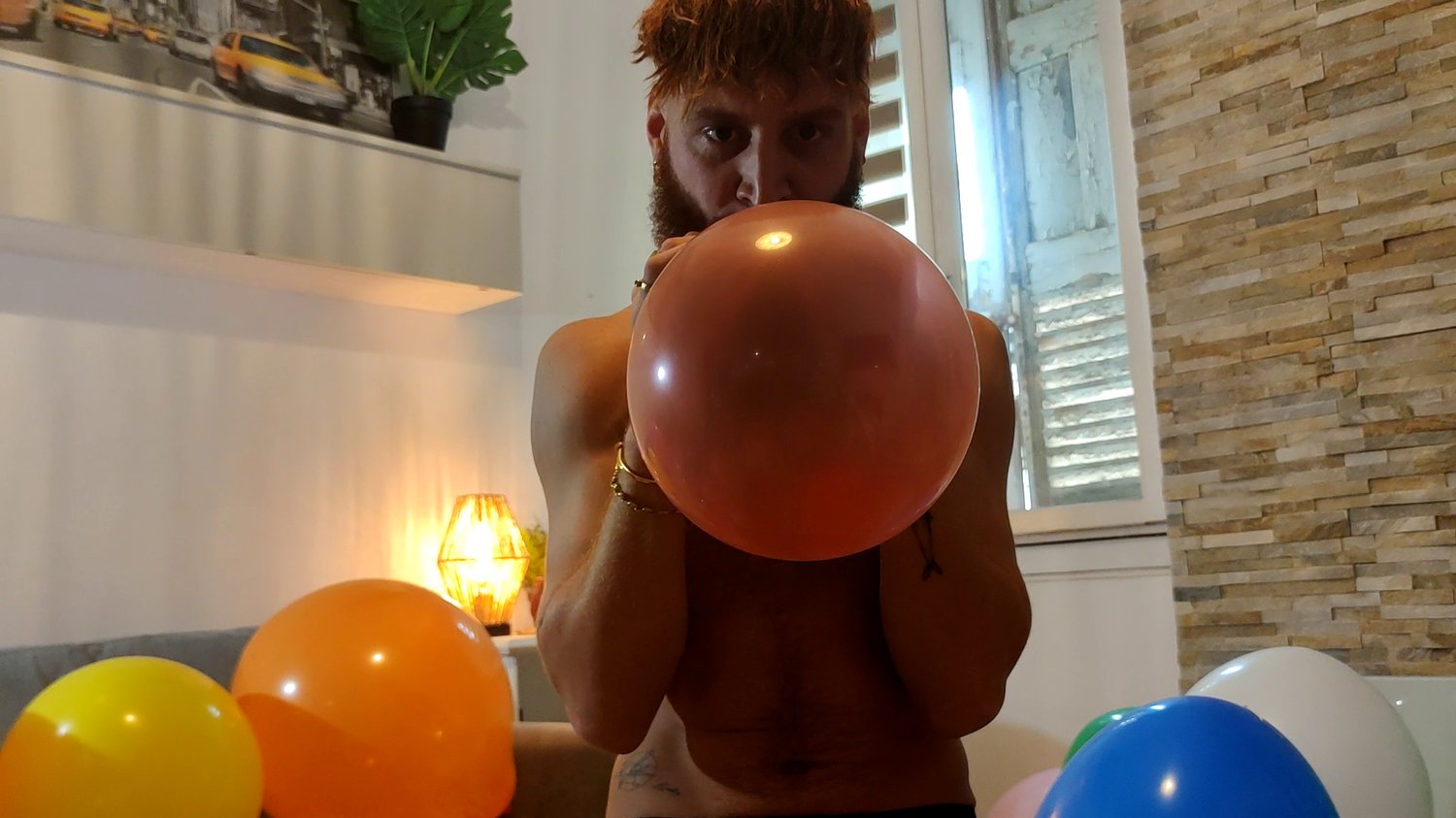 For this video Adam a bearded french guy blow to pop 3 balloons.