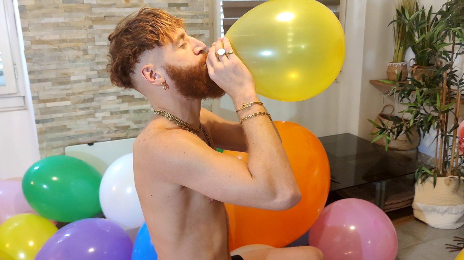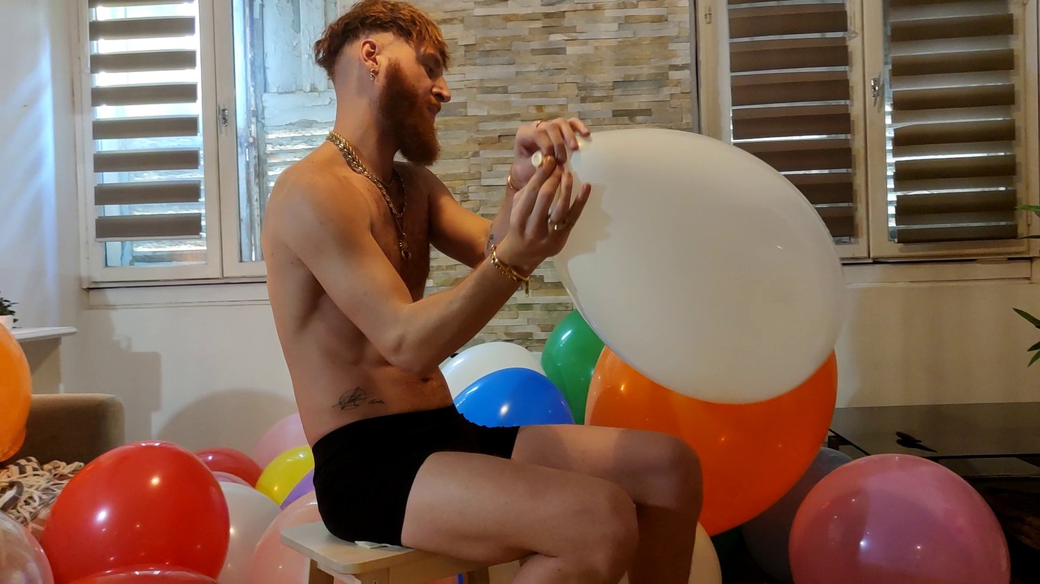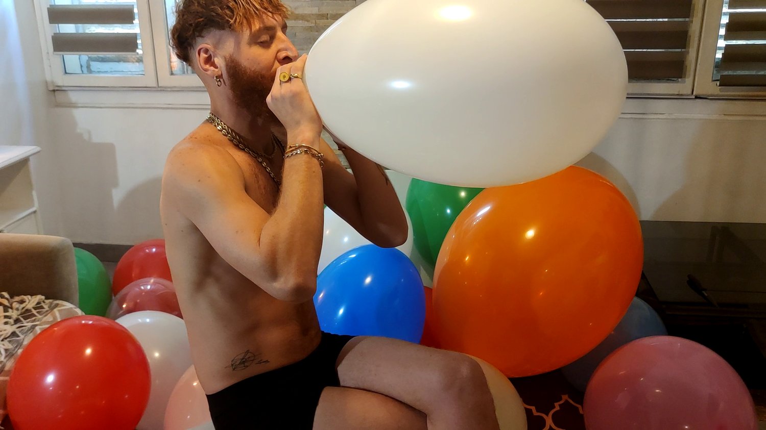 For this video Adam a bearded french guy blow to pop 3 balloons.