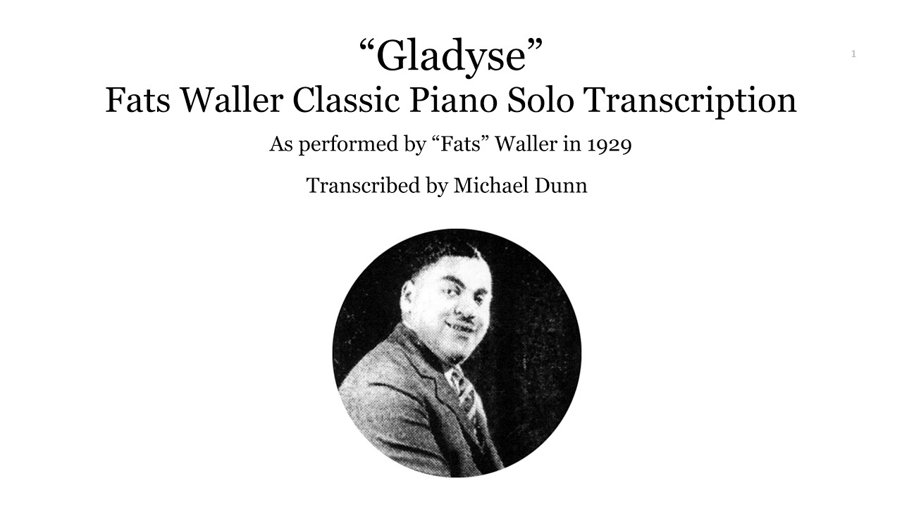 Here's my complete transcription of Fats' classic novelty piano solo Gladyse from 1929.