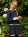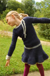 My sample uses New Lanark Donegal Tweed silk aran (90% wool, 10% silk) as the main yarn. The silk content provides extra drape and weight that makes the skirt swing. However this is fine knit with most wool or acrylic yarns; you’ll just get a lighter garment with even more flight and bounce (the russet sample is in a pure wool). You will also need a small amount of contrasting aran for the cuffs,neck and waist details (I used New Lanark pure wool aran). For the underskirt you will need a contrasting fingering weight yarn. For the fingering weight choose a yarn with some natural stiffness - I used a shetland wool (Jamieson’s spindrift) but a sock yarn with some nylon may be a good substitute if you prefer machine washability.