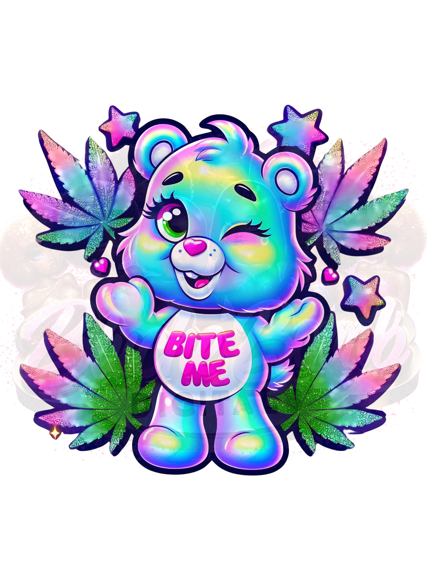 Add some flair to your projects with this colorful "Bite Me" rainbow bear design! Featuring a vibrant bear surrounded by glittery leaves, stars, and a playful wink, this digital download is perfect for T-shirts, mugs, tote bags, and more. Ideal for those who love humor, bold designs, and a touch of sass, this unique graphic will bring personality to your creations.