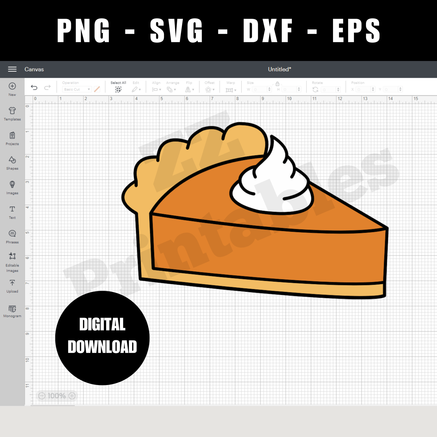 Thanksgiving dessert whipped cream pumpkin pie sublimation orange and white PNG EPS Cricut SVG DXF Silhouette cut files instant digital download. You will receive 1 hiqh quality PNG file (300 dpi) and 12" x 12" in size, 1 SVG file, 1 DXF file and 1 EPS file .