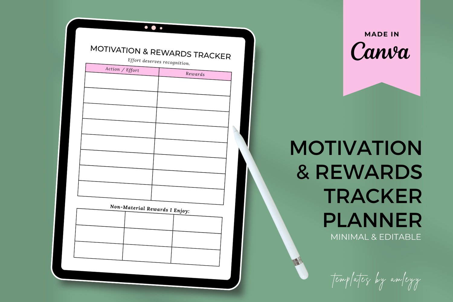 Motivation & Rewards Tracker Canva Template | ADHD Reward System | Habit Incentive Log | Goal Reward Planner