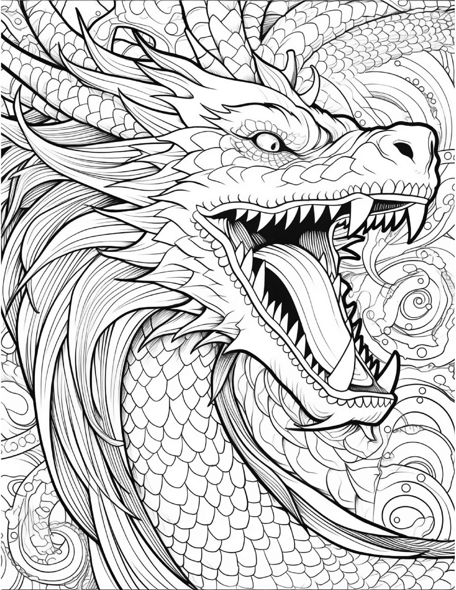Discover the joy of coloring as you explore detailed depictions of dragons.