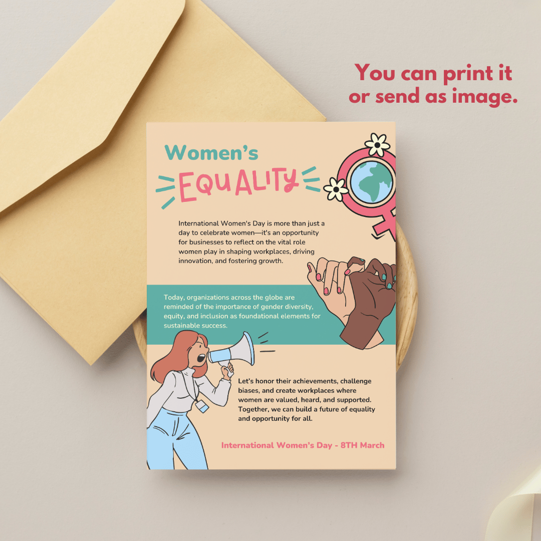 Designed with a cartoon aesthetic, this template is perfect for businesses, enterprises, friends, coworkers, and professional environments to highlight the importance of gender equality, leadership, and workplace inclusion.