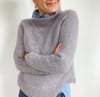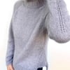 A cozy basic sweater with a super soft yarn combination and eXceptional shaping lines. Easy to knit from the top down and cool for an effortless look