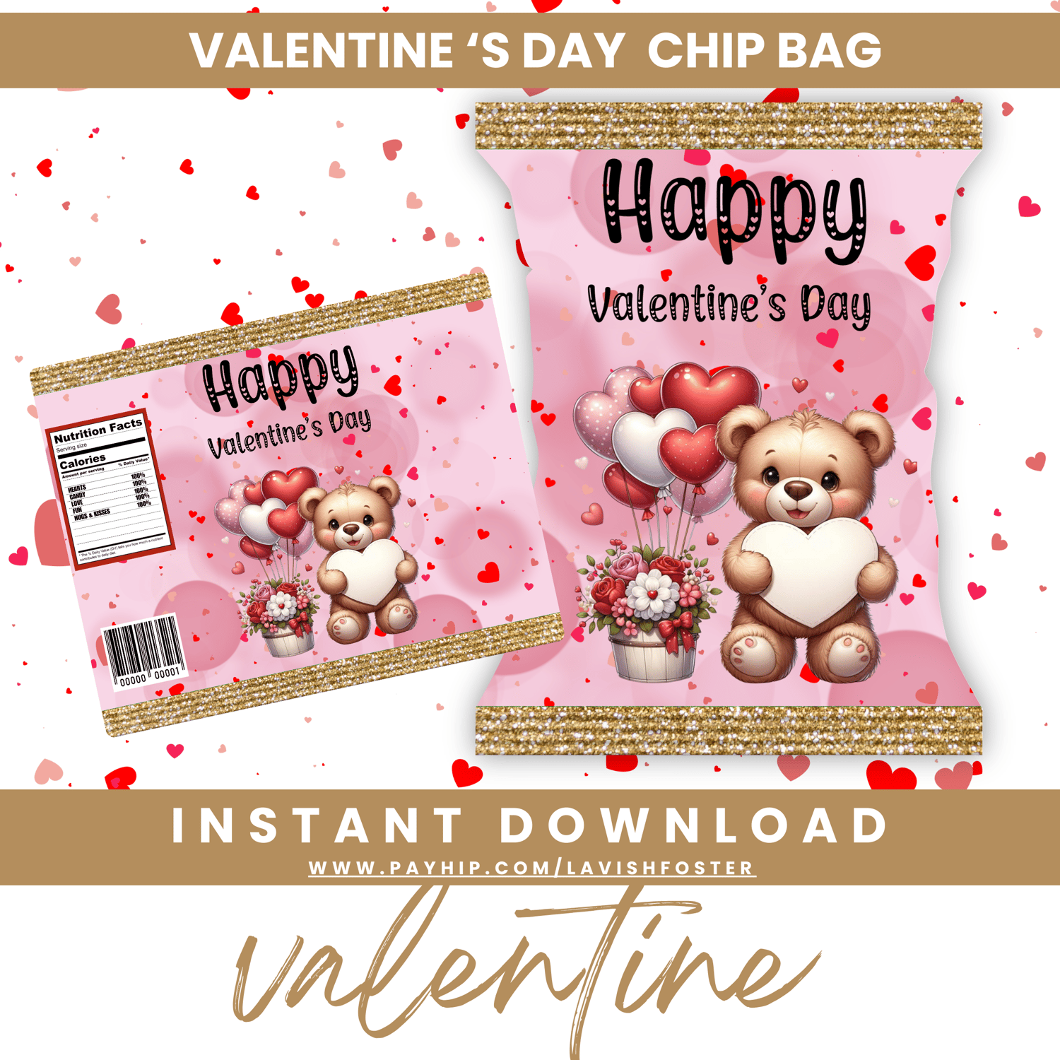 Valentine's Beige Teddy Bear Chip Bag Instant Download