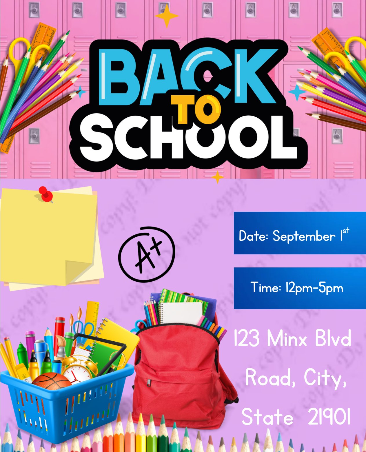 Get ready to kick off the school year with our colorful and eye-catching Back to School Flyer Template! Perfect for promoting school supply drives, community events, or back-to-school sales. This editable digital flyer is designed with bold graphics, school essentials, and event info that stands out. Simply customize with your details and you’re ready to post or print!