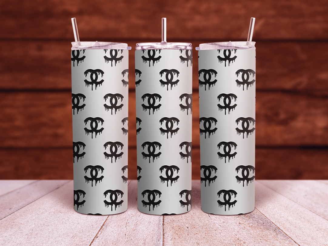 Coco Chanel Dripping Black logo 20oz and 30oz Sublimation Tumbler Wrap PNG