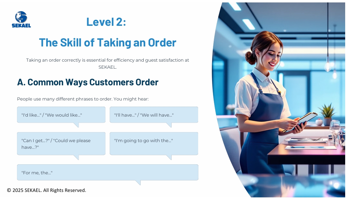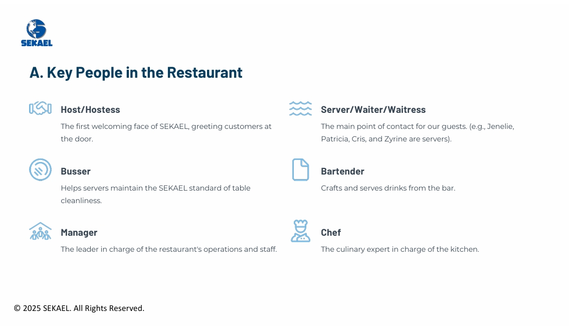 - ✅ Professional Body Language: How to look like an expert server, even when the restaurant is busy.