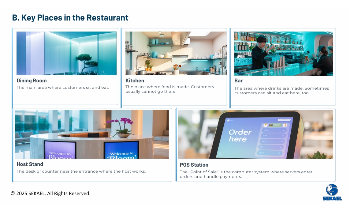 - ✅ The "Magic Phrases": Exactly what to say to greet guests, take orders, and clear tables with 5-star politeness.