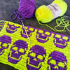 Digital chart and instructions in English (US terms) with detailed photos for creating the Big Skulls pattern in mosaic crochet. This pattern uses the overlay mosaic crochet technique.