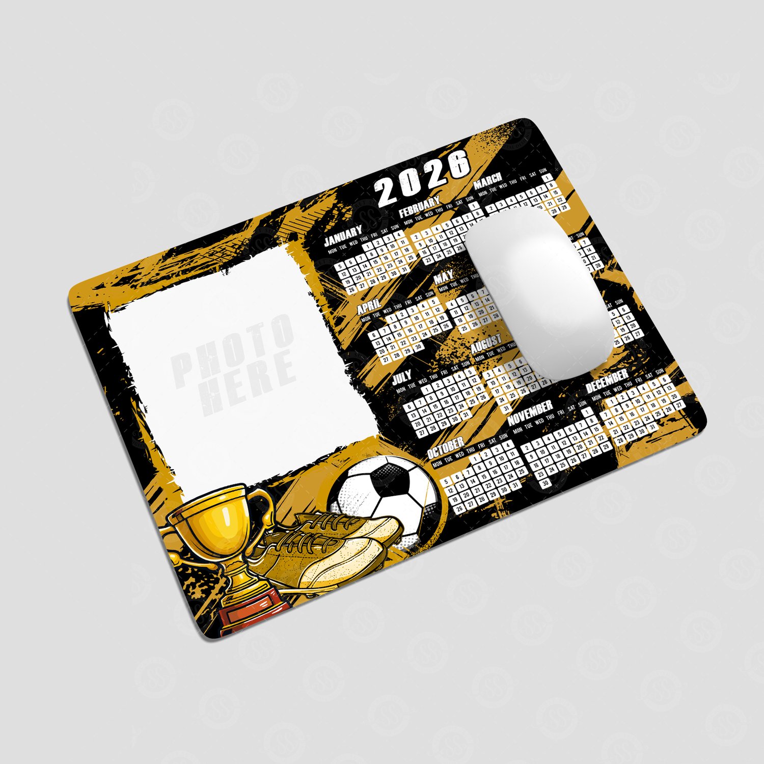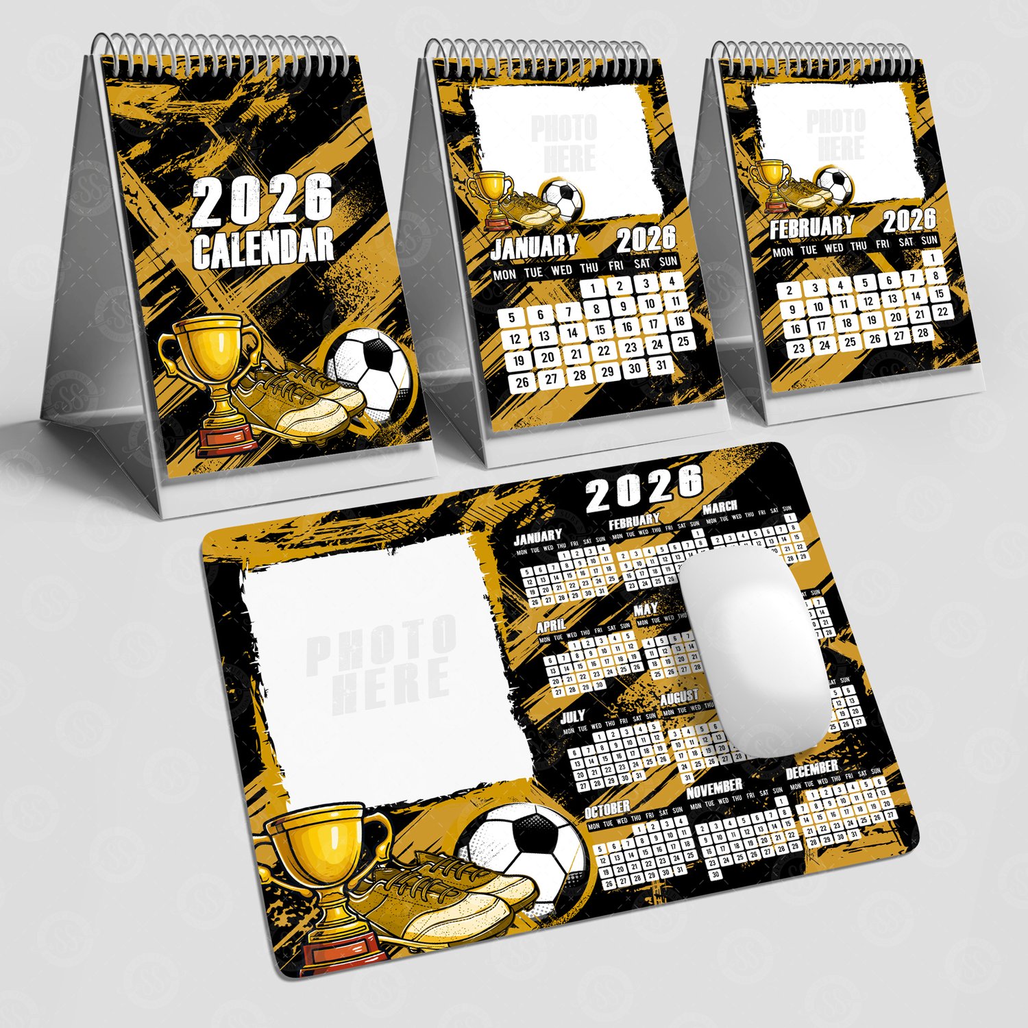 2026 Black & Gold Football Upright Calendar and Mouse Mat Bundle