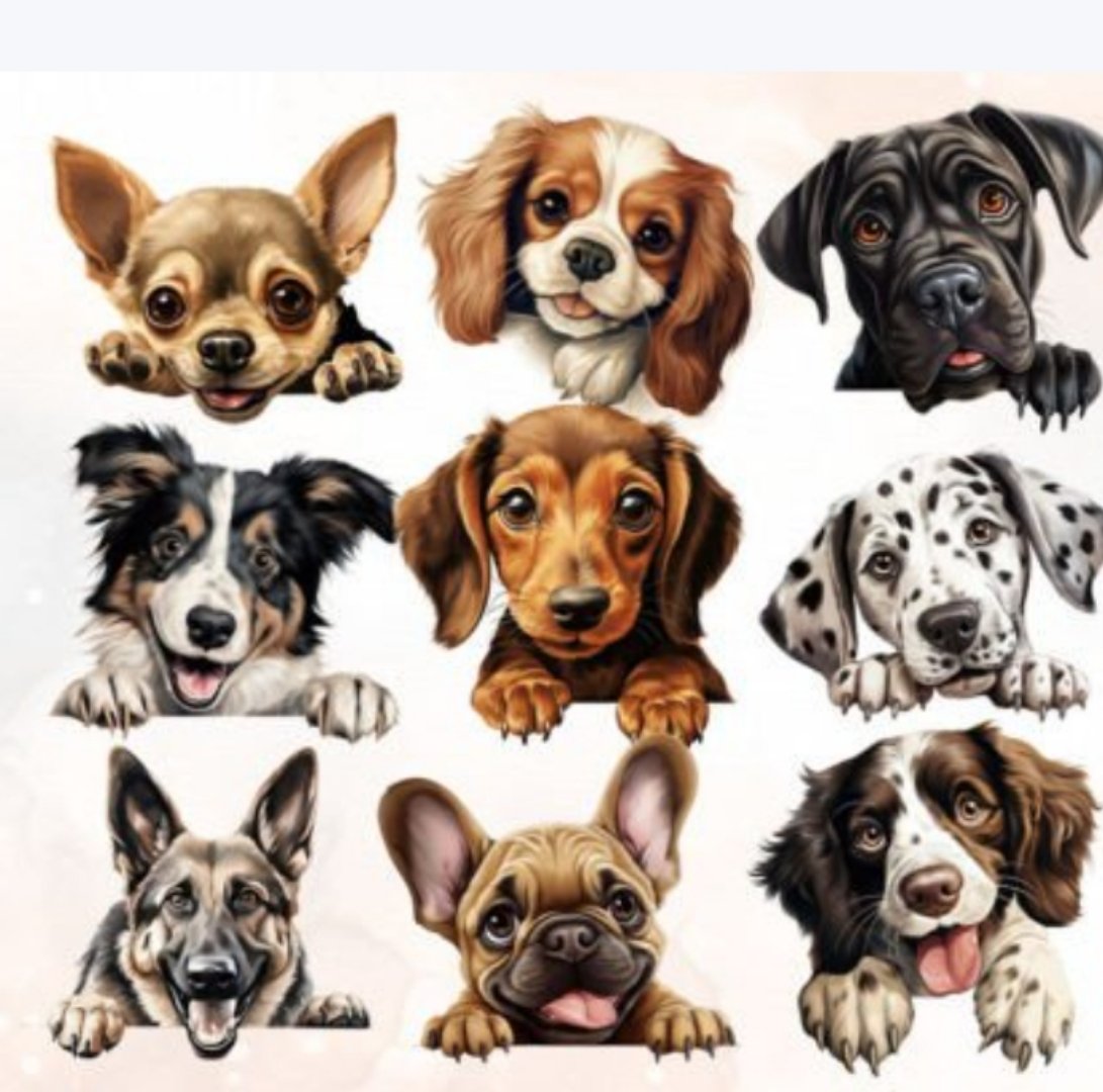 All sorts of different breed of cute peeking dogs clipart that can be used for various of things so many to choose from
