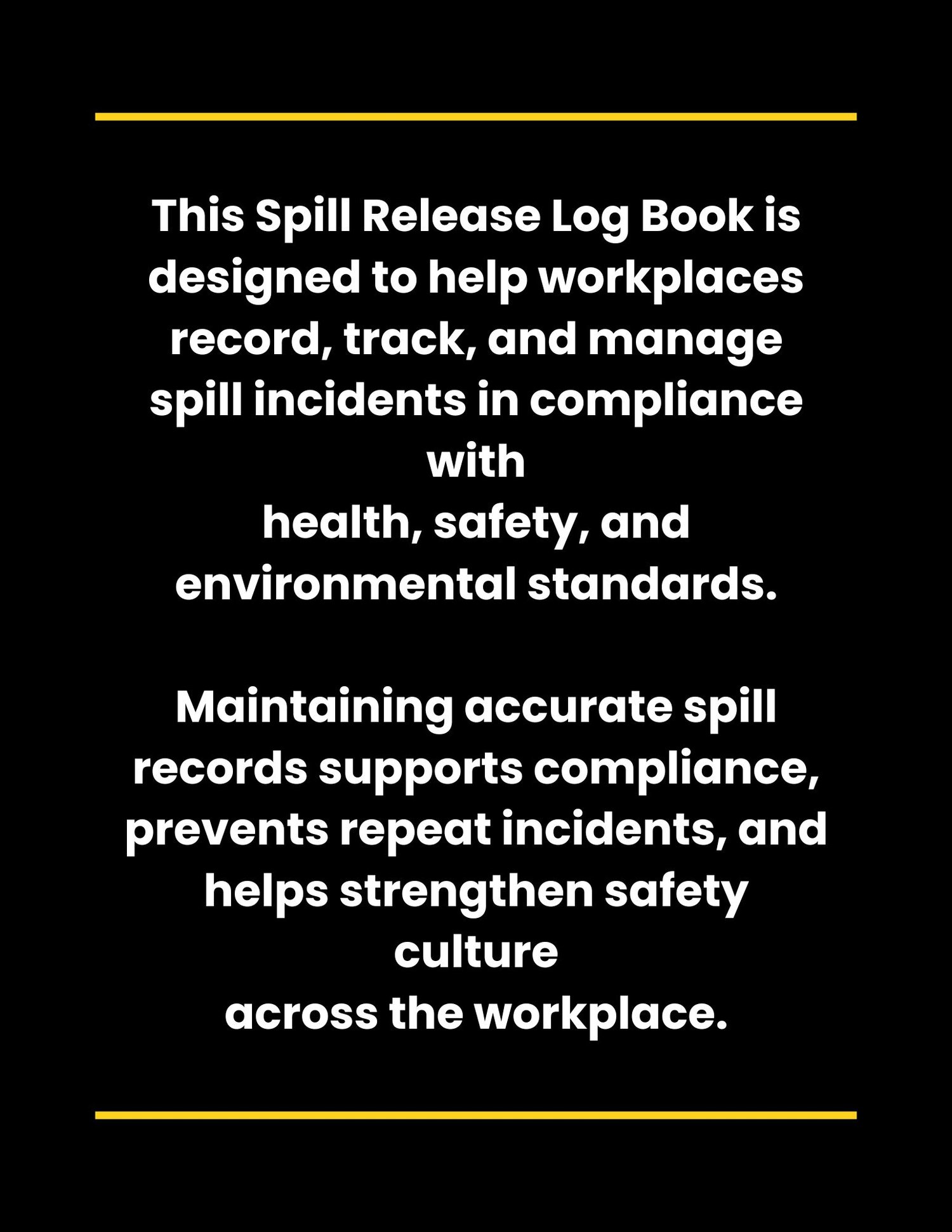 Spill Release Logbook – Workplace Hazard & Chemical Spill Tracker (A4 / 8.5x11 Inch)